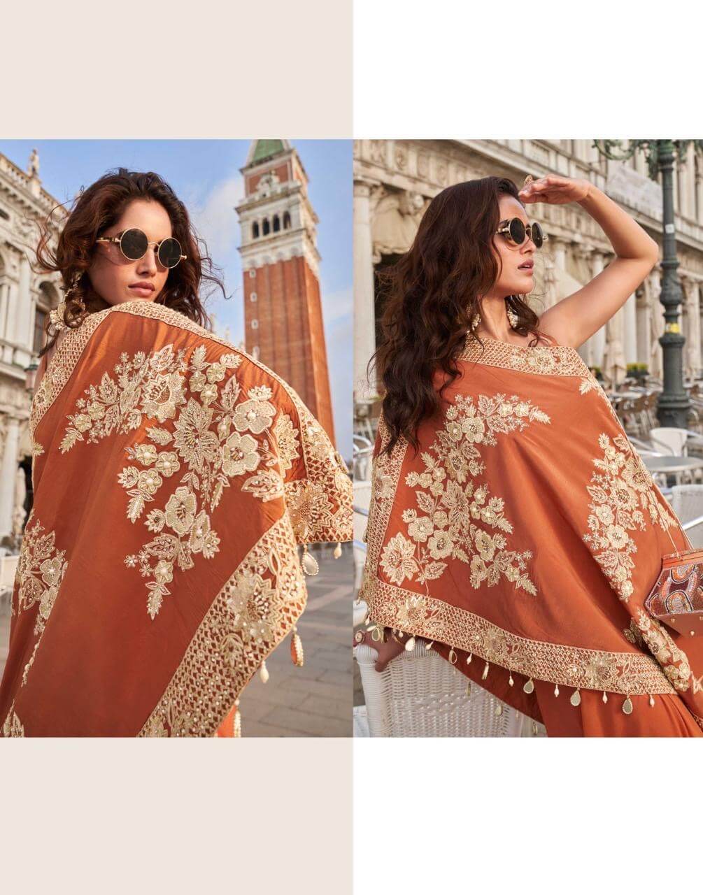 FABRIC – REAL PREMIUM CREP ( LATEST TRENDY STYLIST FRONT AND BACK BEADS EMBROIDERED PCS WITH BLOUSE AND PLAZZO)
