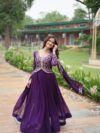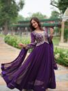 FABRIC & WORK Faux Blooming With Sequins-Multi & Zari Embroidered Work