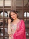 Fabric & Work Georgette With Bandhani Print With Embroidered Cut-Work