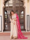 Fabric & Work Cosmos weaving Jequard with Pearl Beads Embroidered work