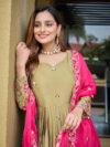Gwon Fabric Pure Rangoli Silk With Heavy Embroidery 3mm Sequence Work With Full-Sleeve With (*Attached Ped*)