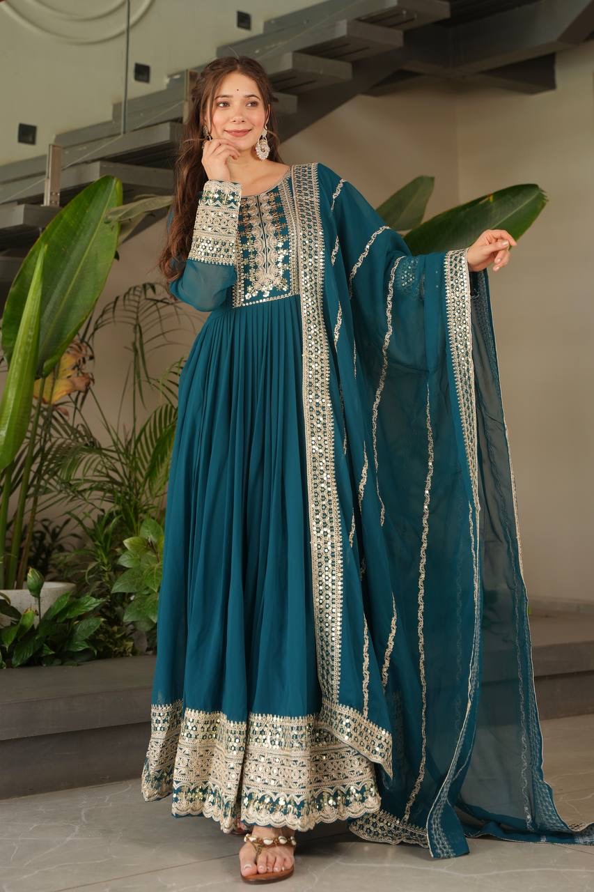 Gown Febric Fox Georgette Hevy Coding Embroidery Siqunce Work