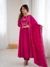 YOKE FANCY HANDWORK BEADS WORK 16 KALI GOWN FULL CHURIDAR SLEEVES WITH FANCY BEADS LACEWORK,SIDE ZIPPER FANCY WORK DUPPTA BACKSIDE FANCY TASSELS