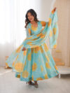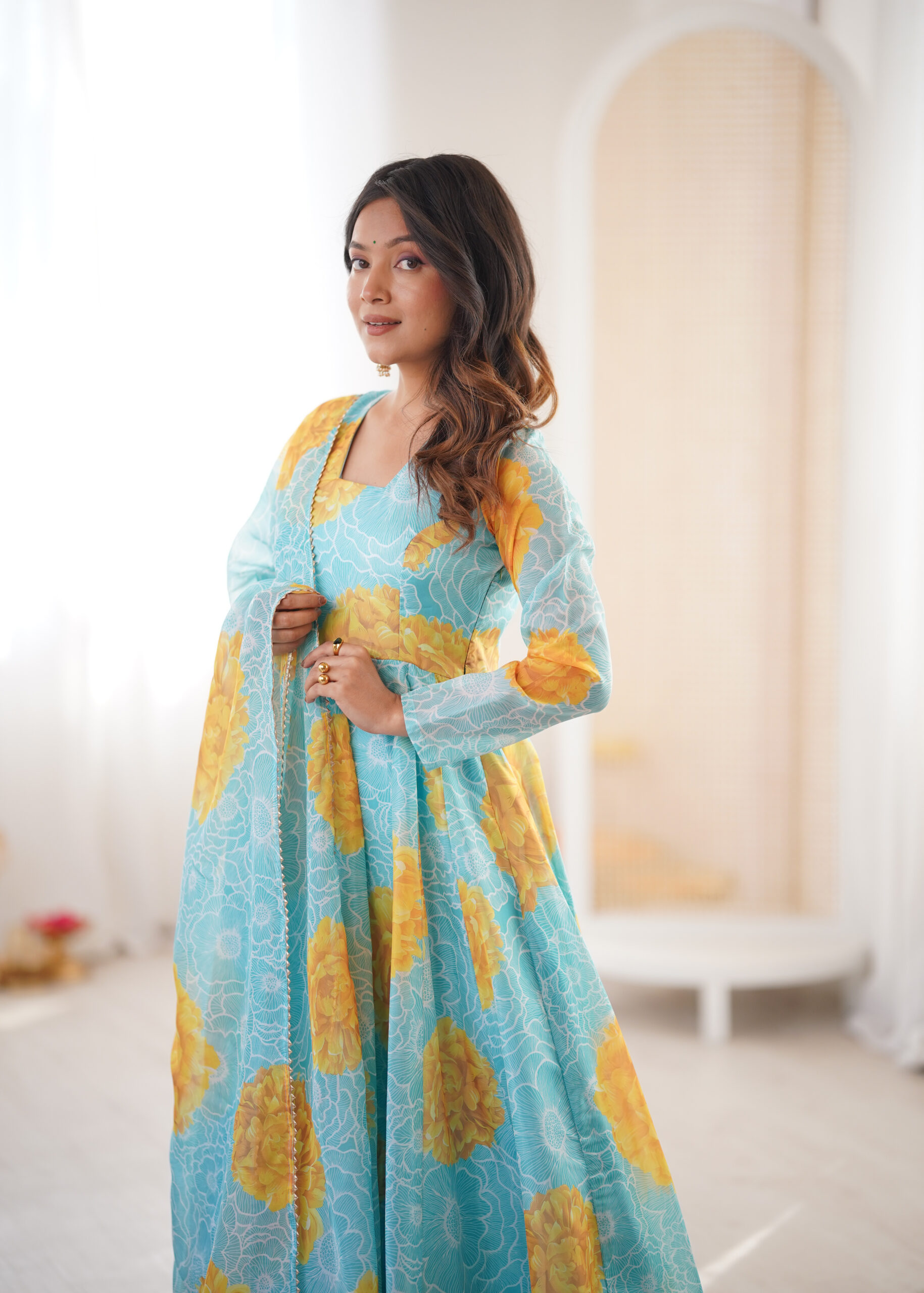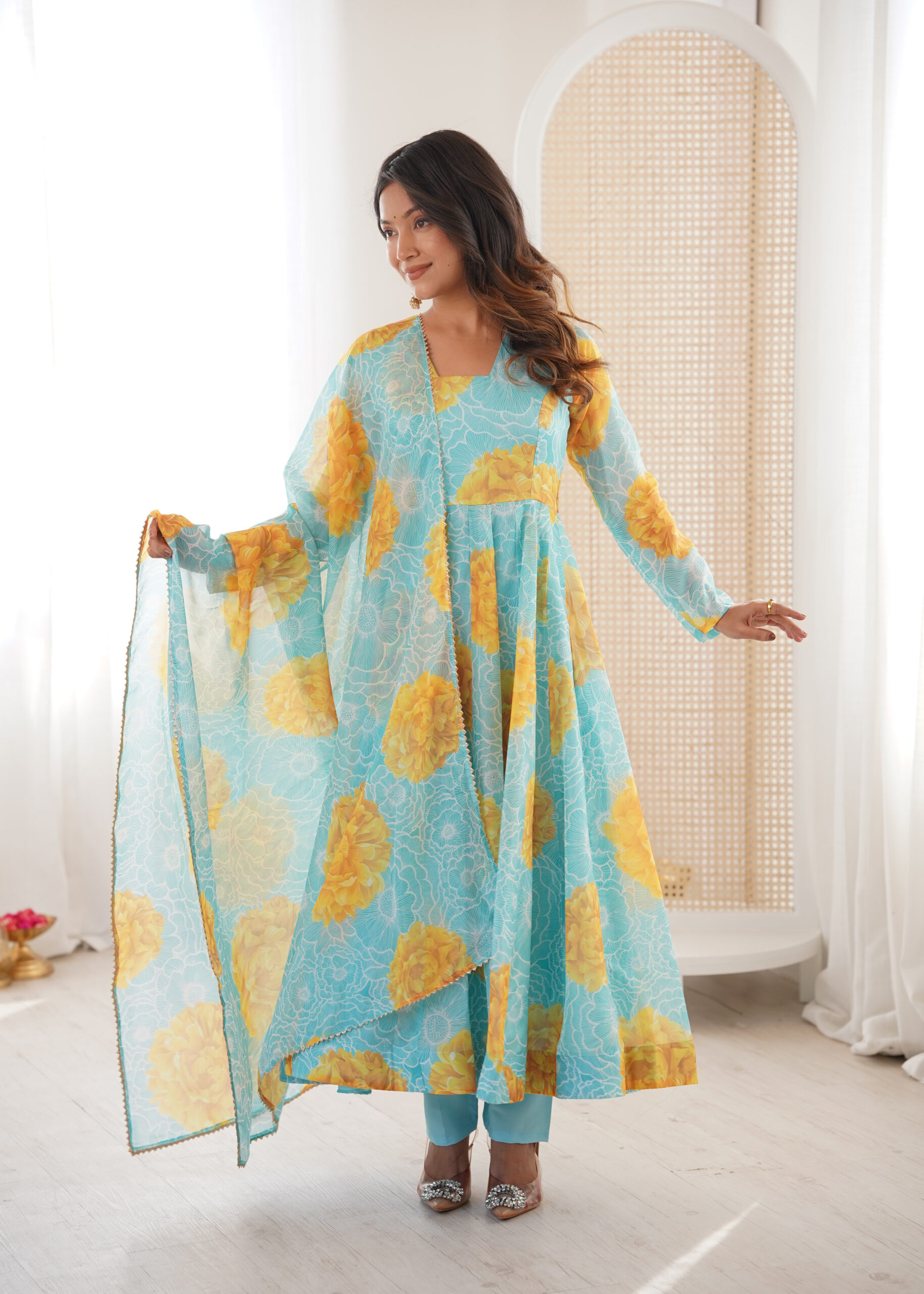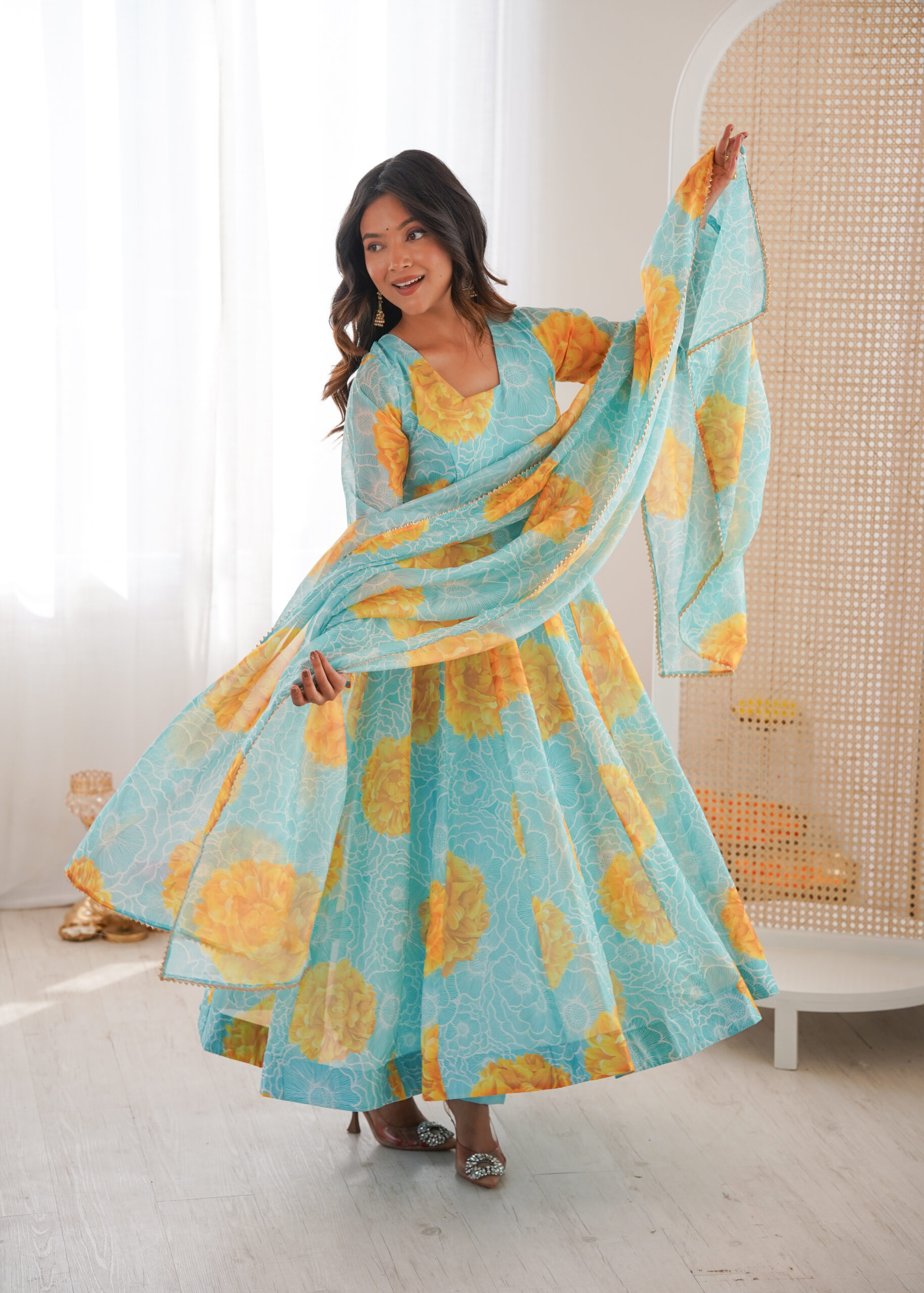 DUPPTA 2.3 MTR PURE SOFT LIGHTWEIGHT ORGANZA FLORAL PRINT BOADER LACE WORK