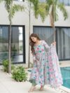 ANARKALI FABRIC PURE SOFT LIGHTWEIGHT ORGANZA FLORAL PRINT FABRIC INNER MICRO COTTON