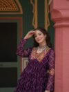 Fabrics & Work Bandhani Print work with kutchi patchework in Faux Georgette.