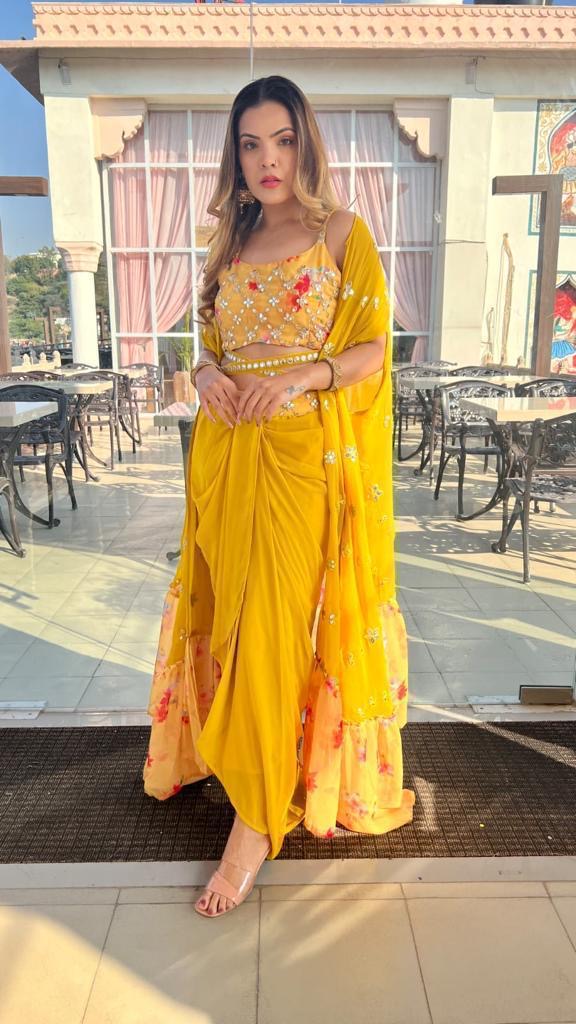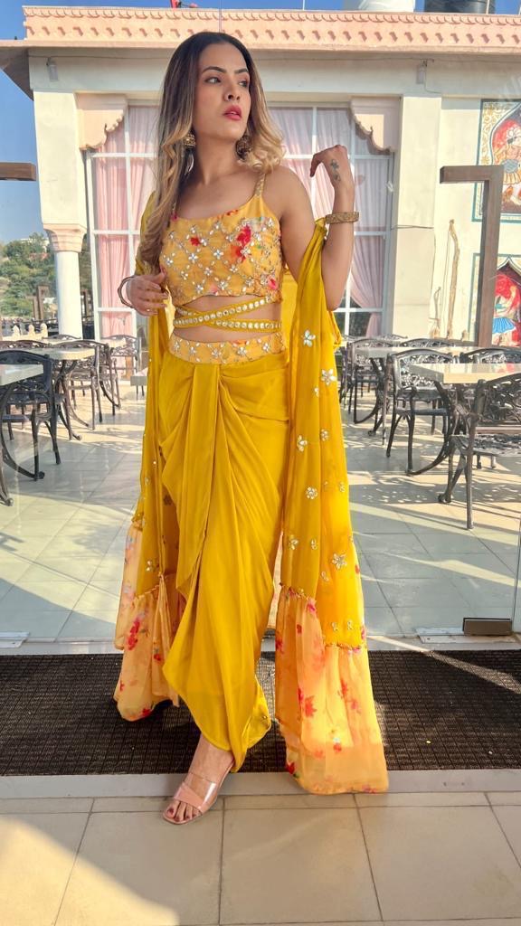 READY TO WEAR 3pcs DRESS EMBELLISHED WITH FOIL WORK CHOLI AND SHARUG,PADDED CHOLI
