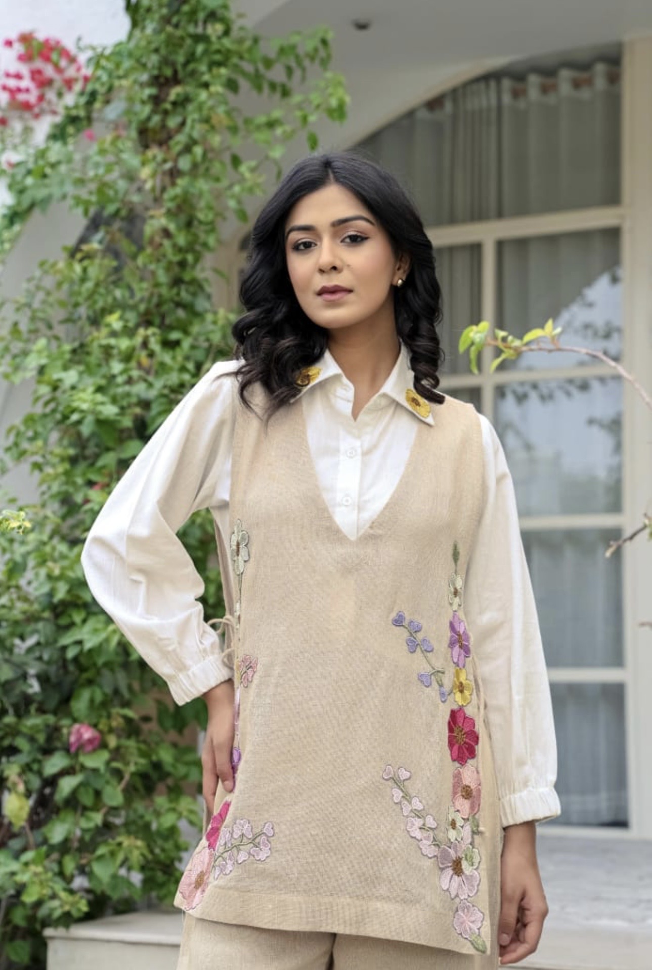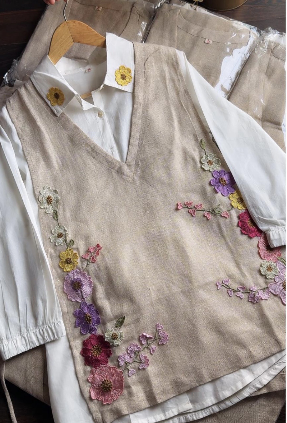 Premium jute Cotton Shirt with Coverup Coord 3 Piece