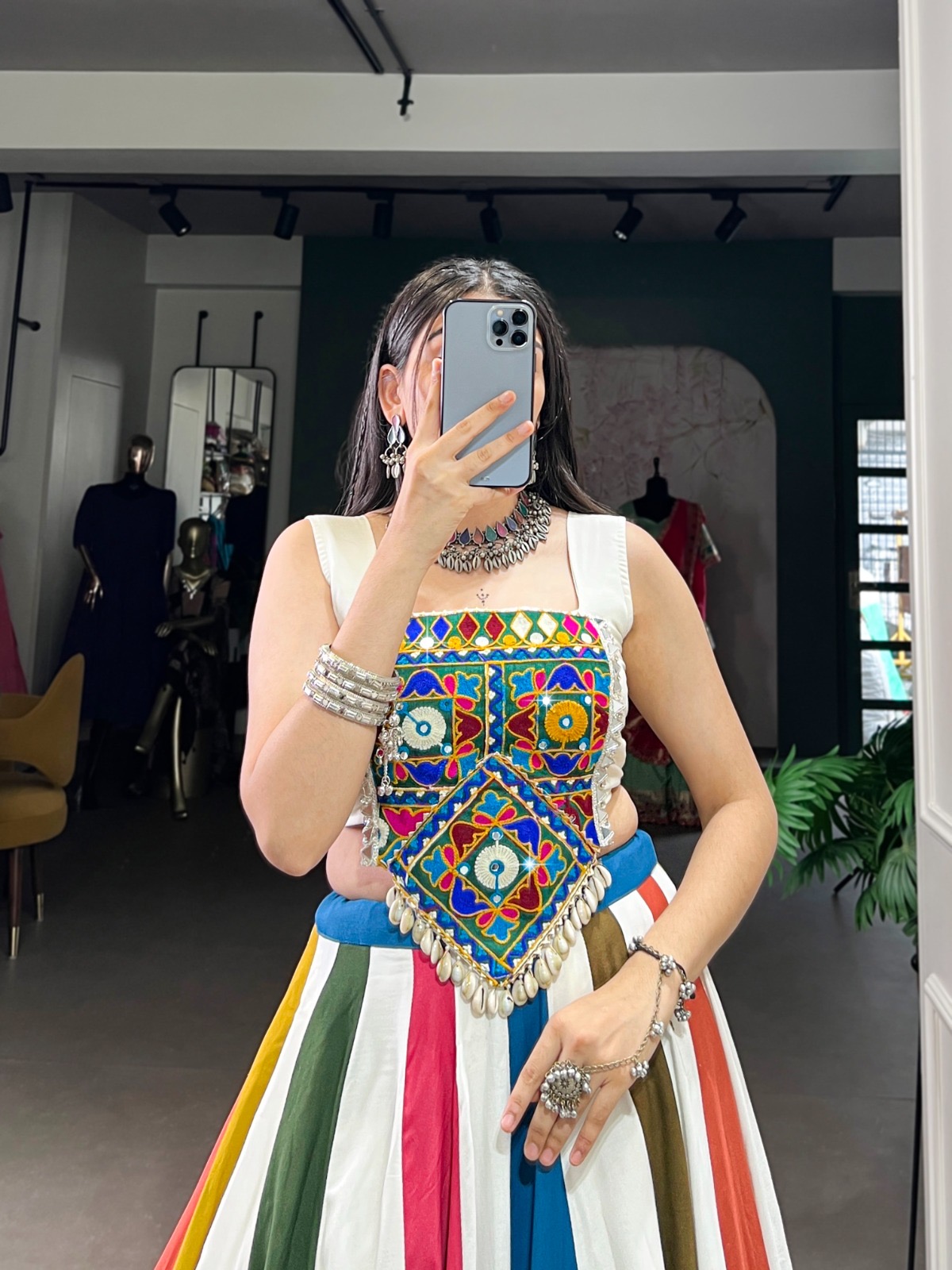 Blouse Work Original Mirror Gamthi Work With Gotta Patti And Cowrie (Kodi) Lace Touch Up With Jarkan Diamond Work