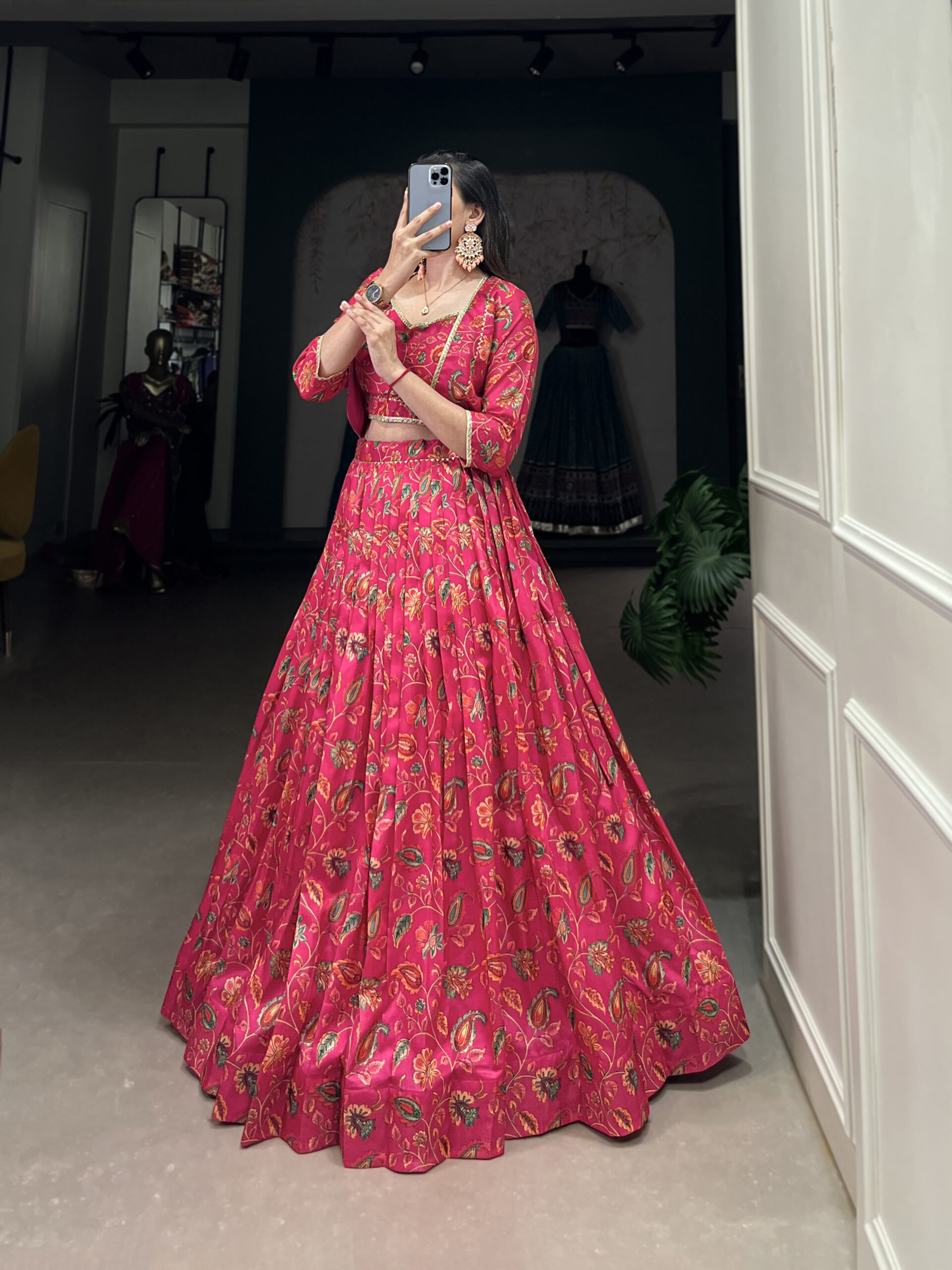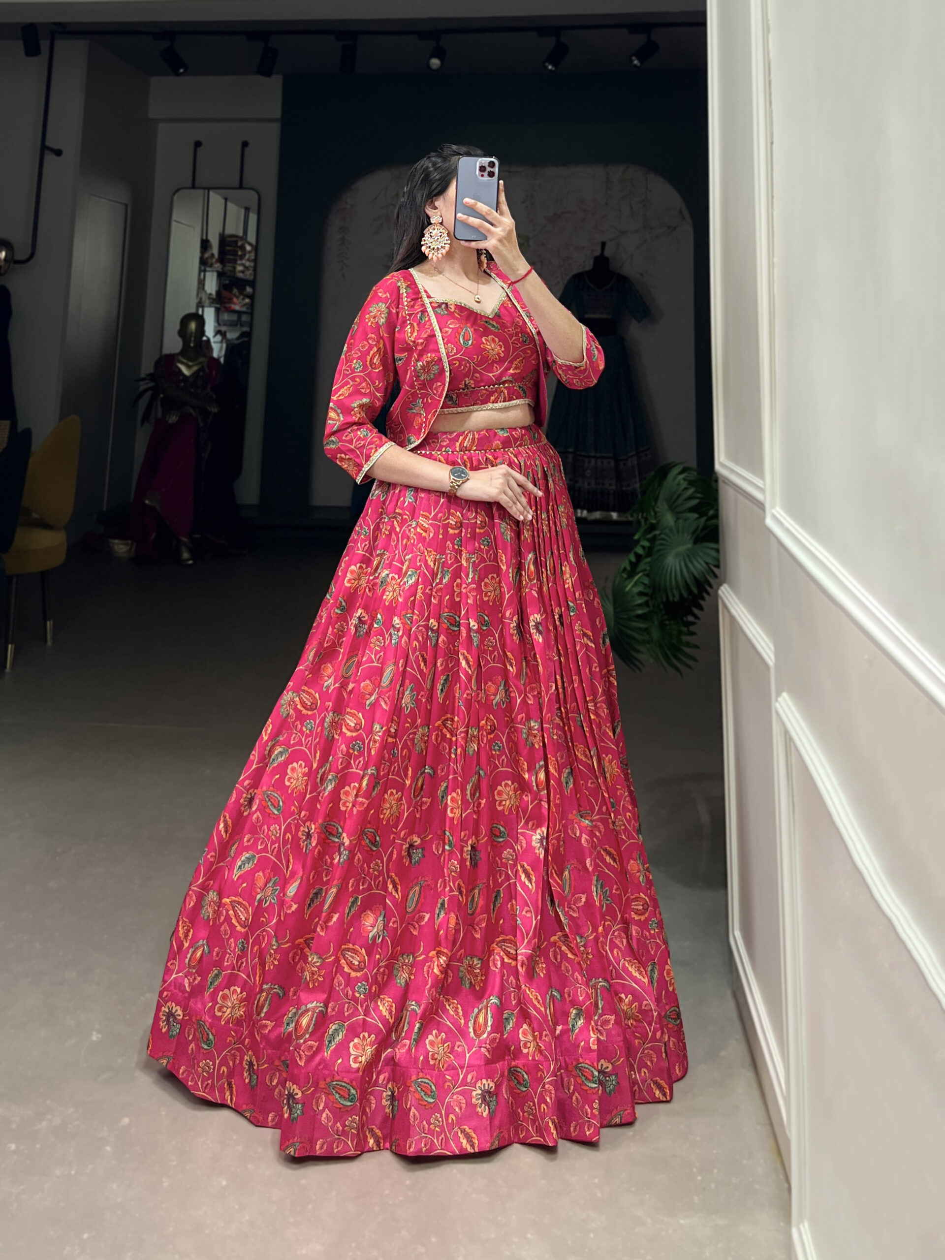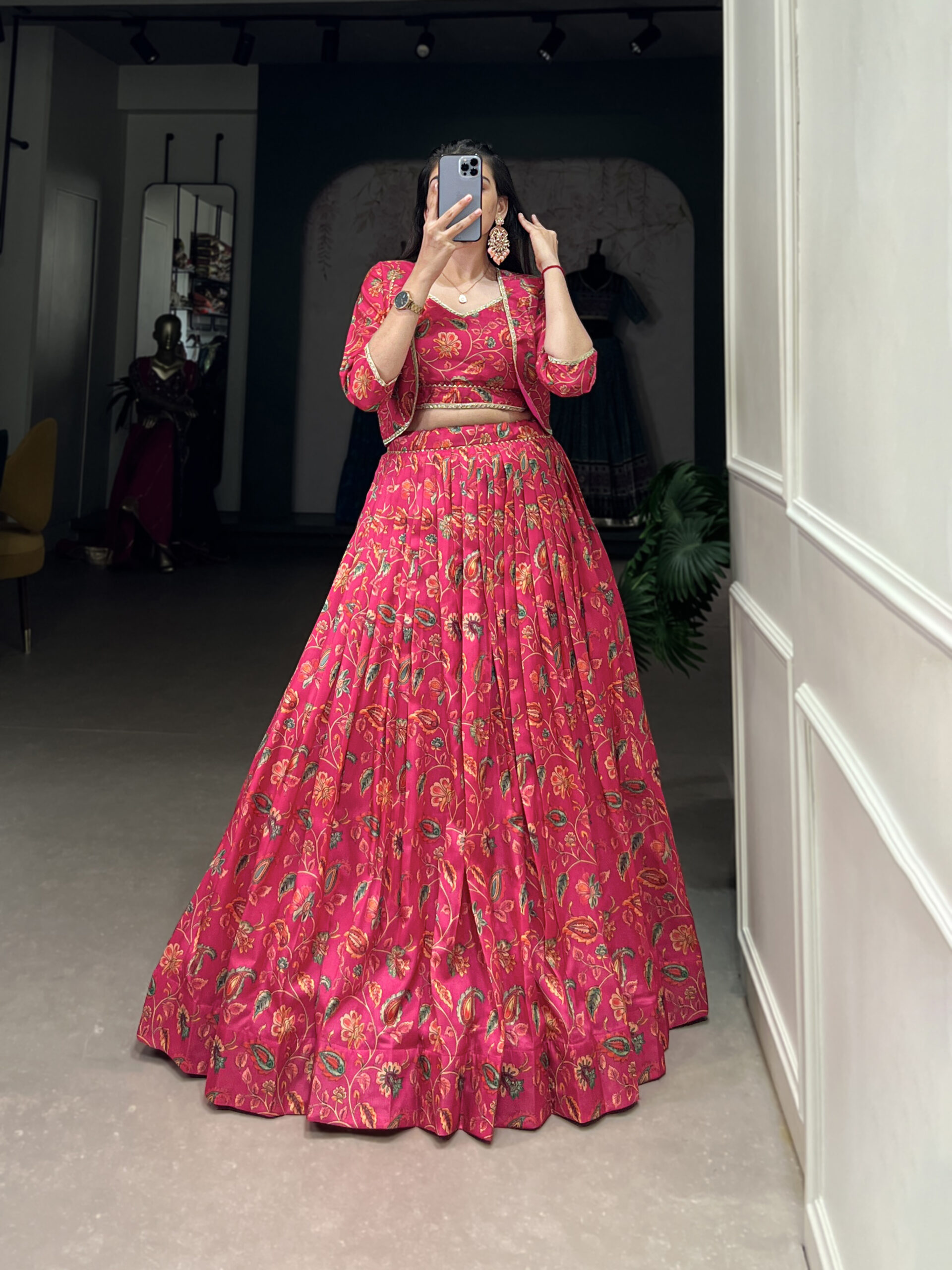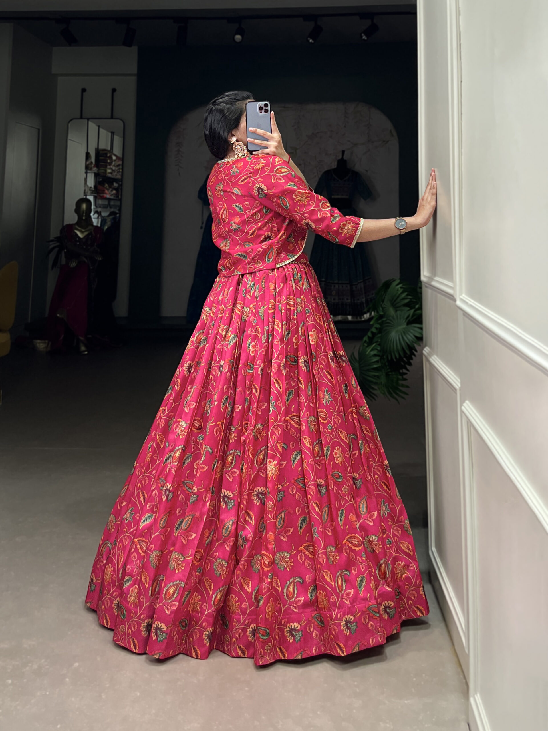 Lehenga Work Floral Print With Gota Patti Touch Up