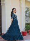 FABRIC & WORK Faux Blooming With Sequins Multithreaded Beads Embroidered work.
