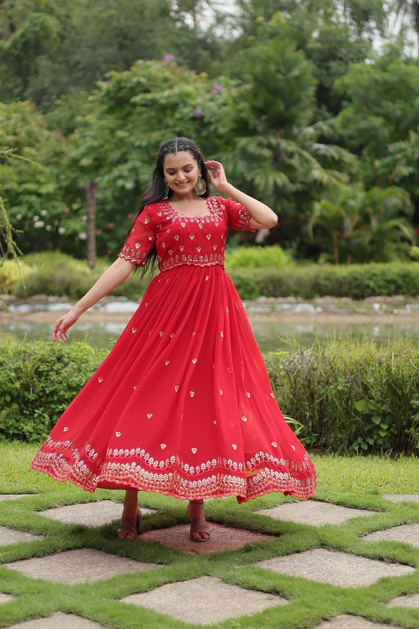 FABRIC & WORK Faux Blooming with Embroidery Zari Sequins-work