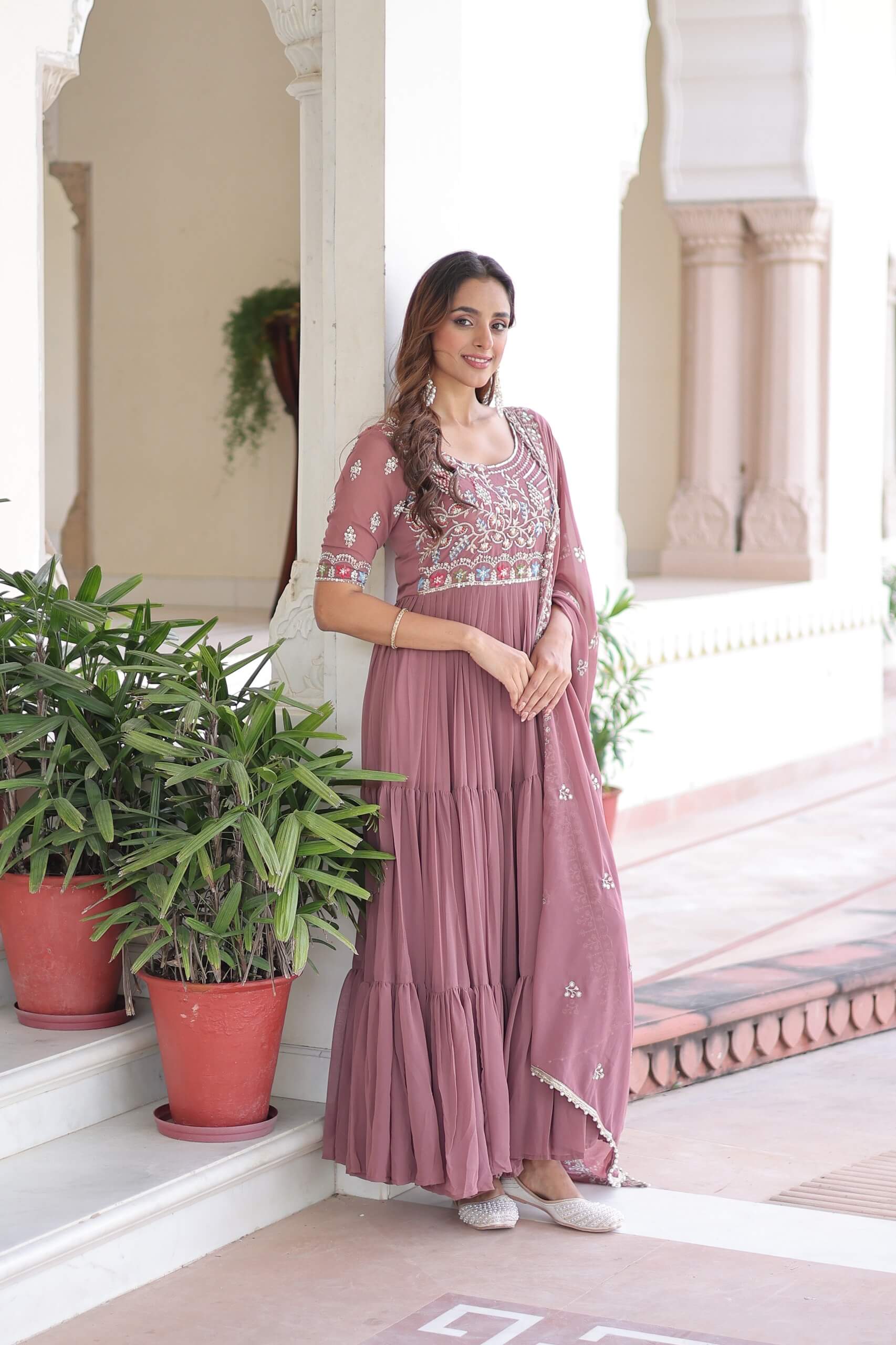 FABRIC & WORK Faux Blooming With Sequins Multithreaded Beads Embroidered work.