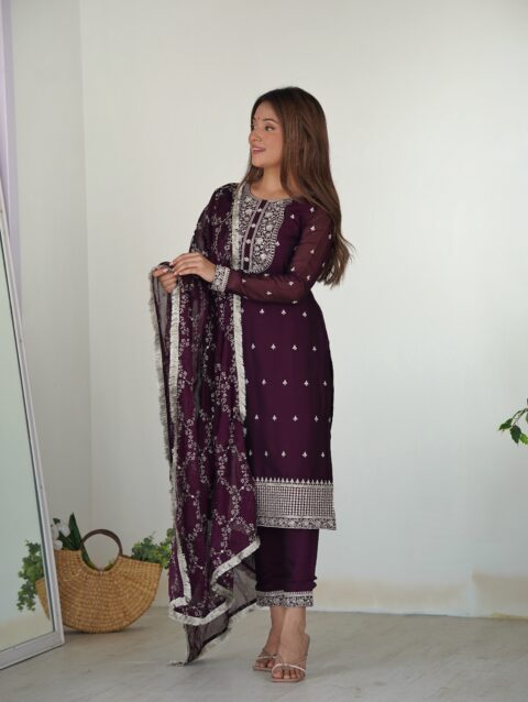 KURTA FABRIC PURE BLOOMING RANGOLI SILK FABRIC WITH BEAUTIFUL EMBROIDERY SEQUENCE AND THREAD WORK ON YOKE,SLEEVES,BOTTOM LACE WORK,ROUND NECKLINE