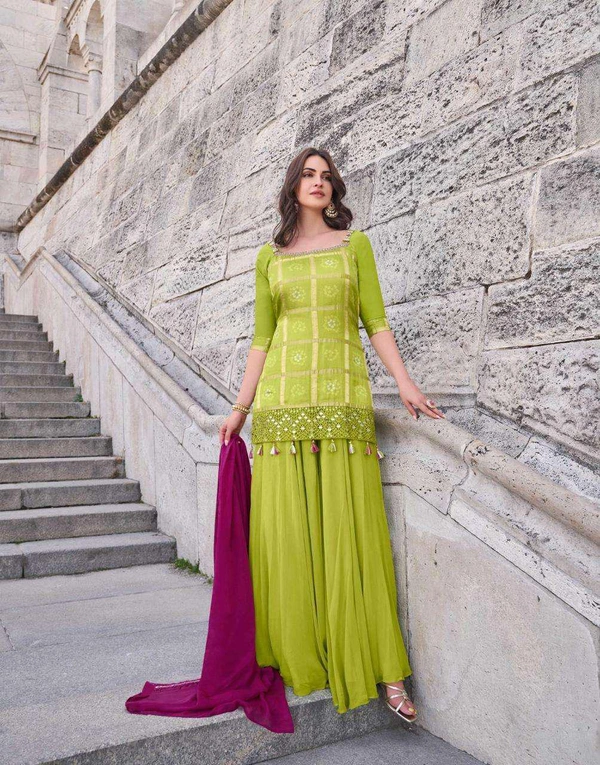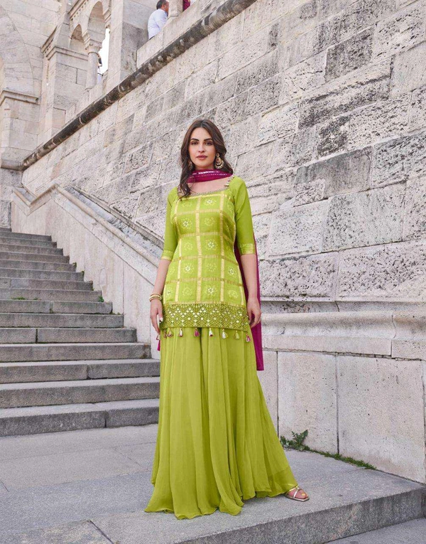 Premium Real Simar Fabric Premium Chinon Silk With Embroidered Dupatta
