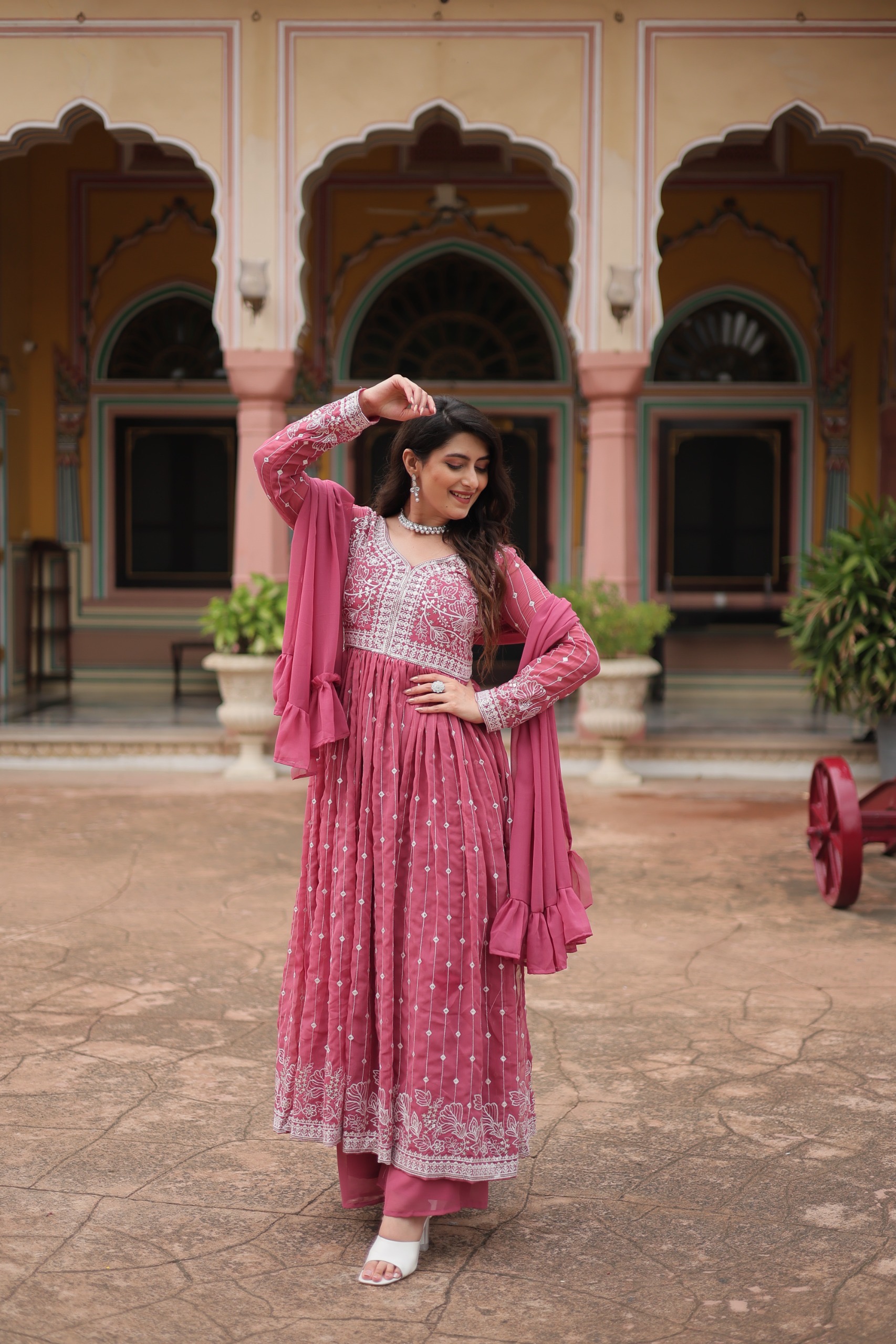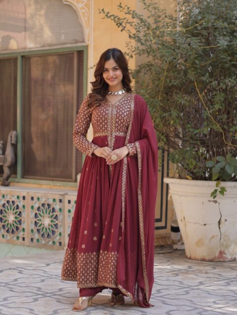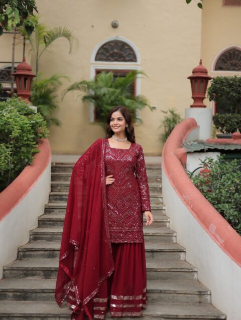 FABRICS & WORK Faux Georgette with Rich Sequins & Thread Embroidered work