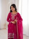 SHARARA FABRIC PURE CRUNCHY SILK FREE SIZE FULLY STTICHED