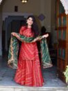bandhej print Kota Doria Skirt and kota Doria kurta (cotton mul lining in kurta and skirt both) paired with kota dori gotta Patti zari border Duppatta set