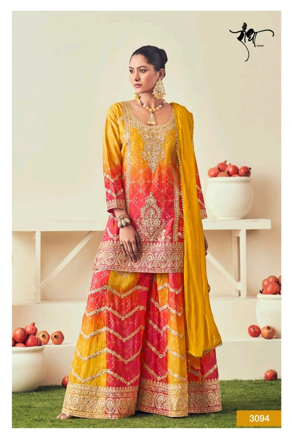 TOP HEAVY PREMIUM CHINON WITH HEAVY EMBROIDARY WORK MIRROR JARKAN WORK