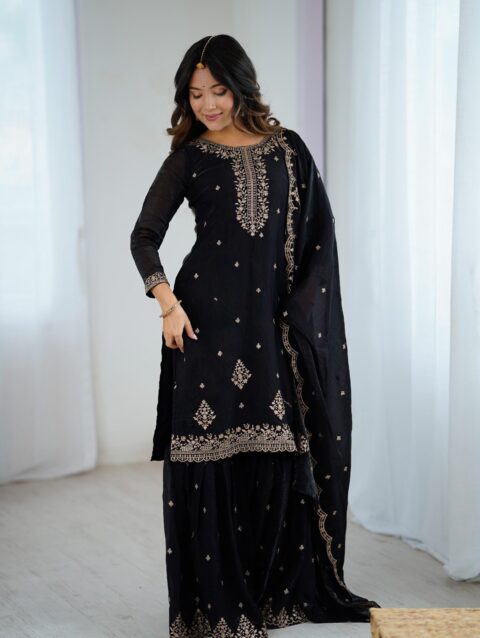 SHARARA FLAIR FULLY FLAIR 1.6+1.6 MTR WITH FANCY EMBROIDERY JARI AND SEQUENCE WORK