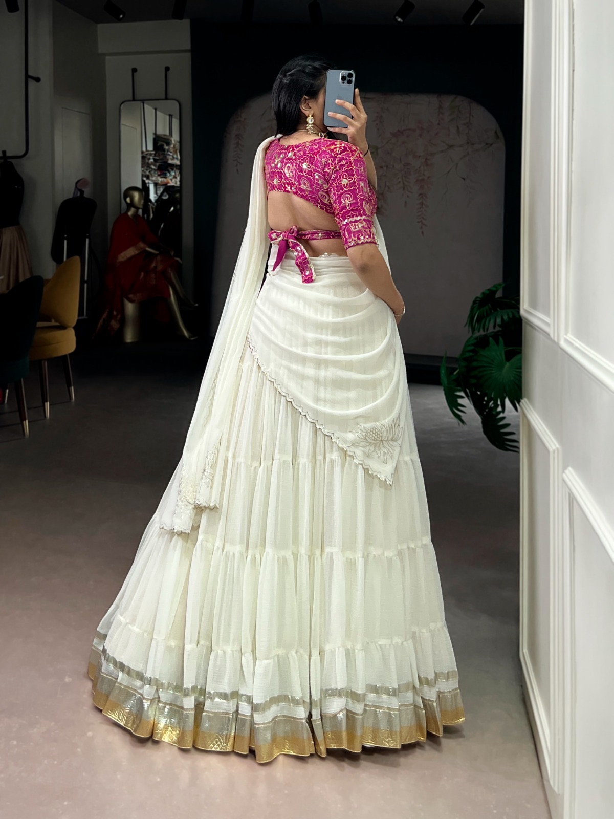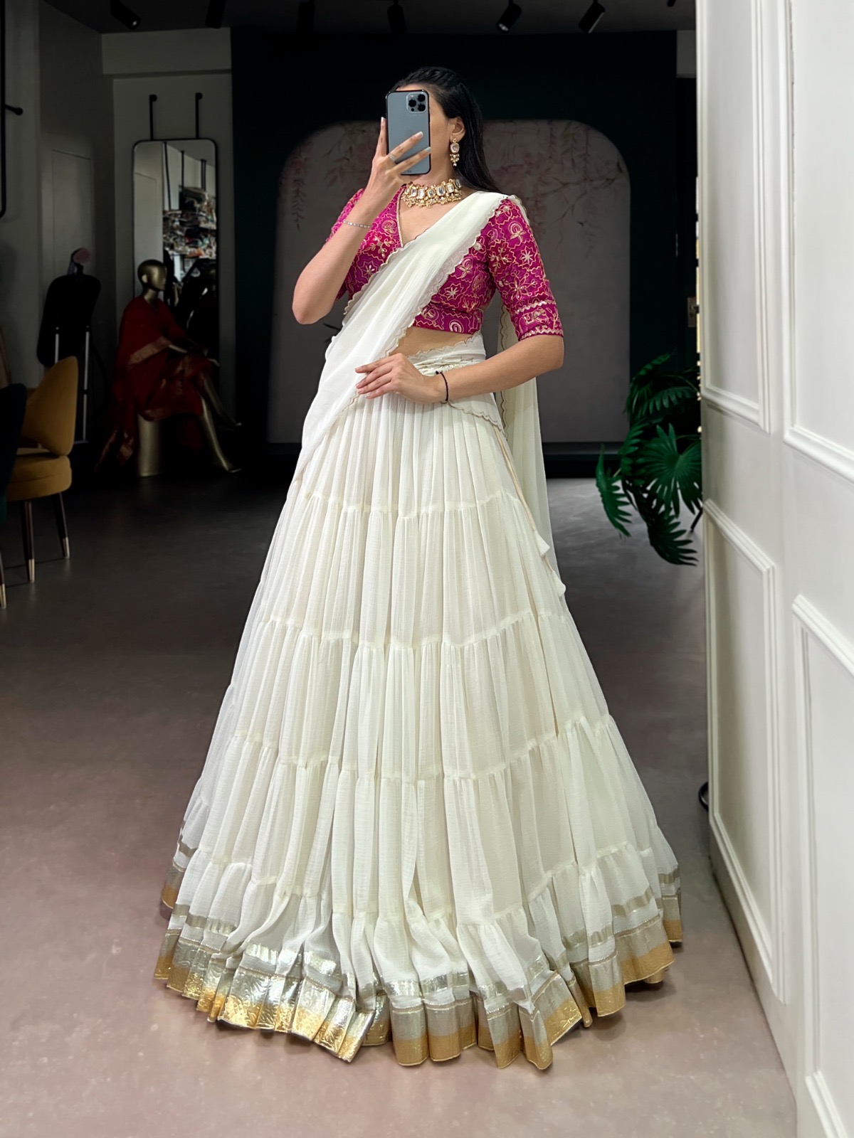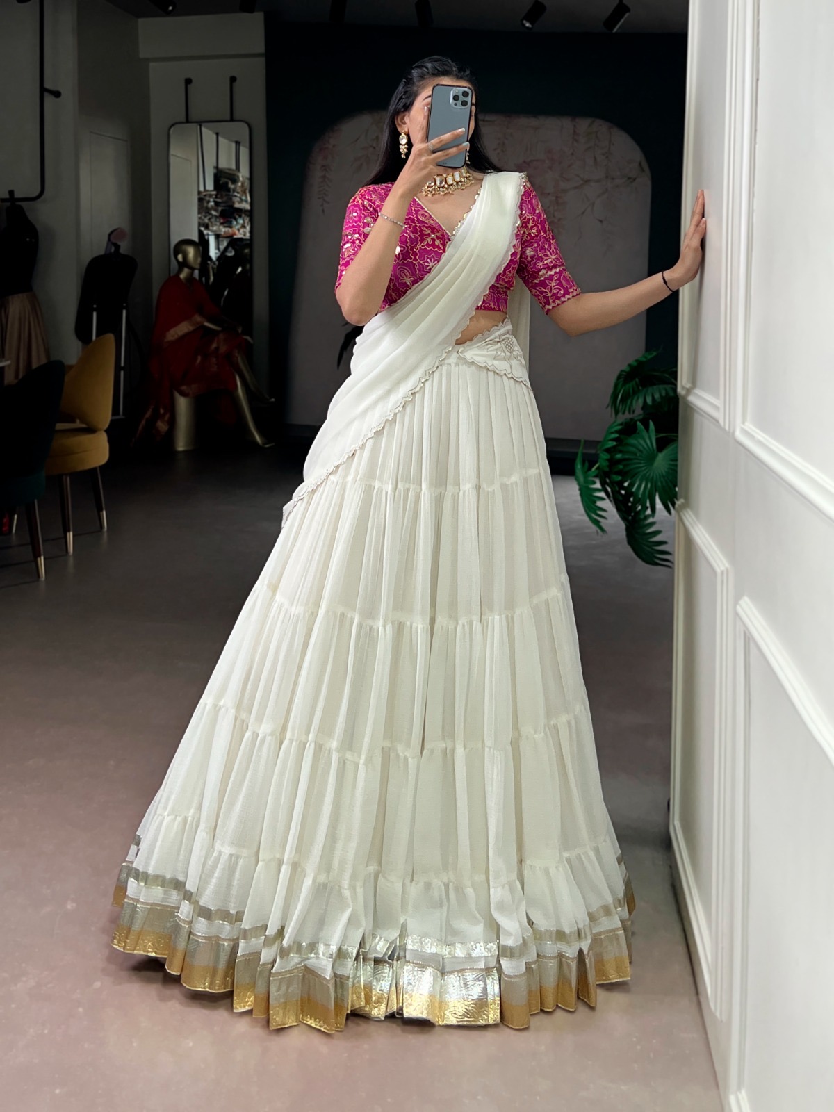 Package Contain Lehenga Blouse Dupatta, Drawstring With Zip