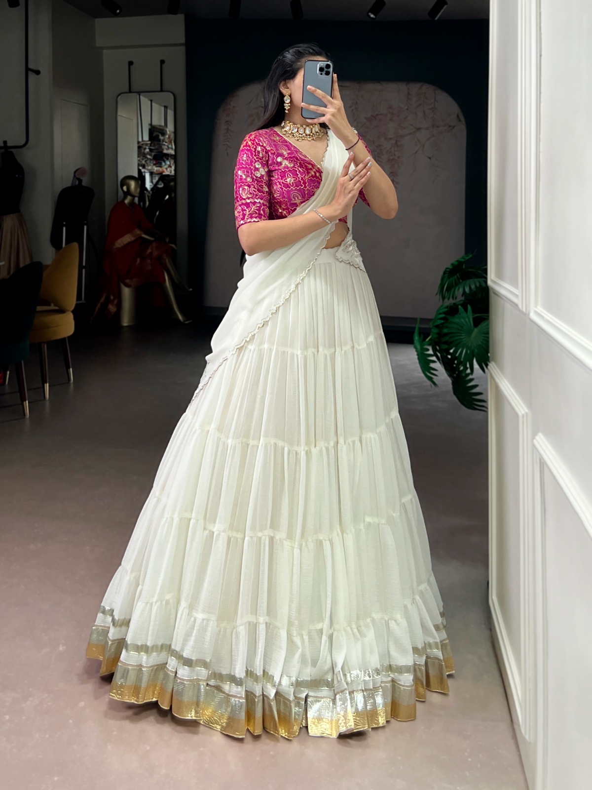 Lehenga work Embossed Design Lace With Gota Patti Touch Up