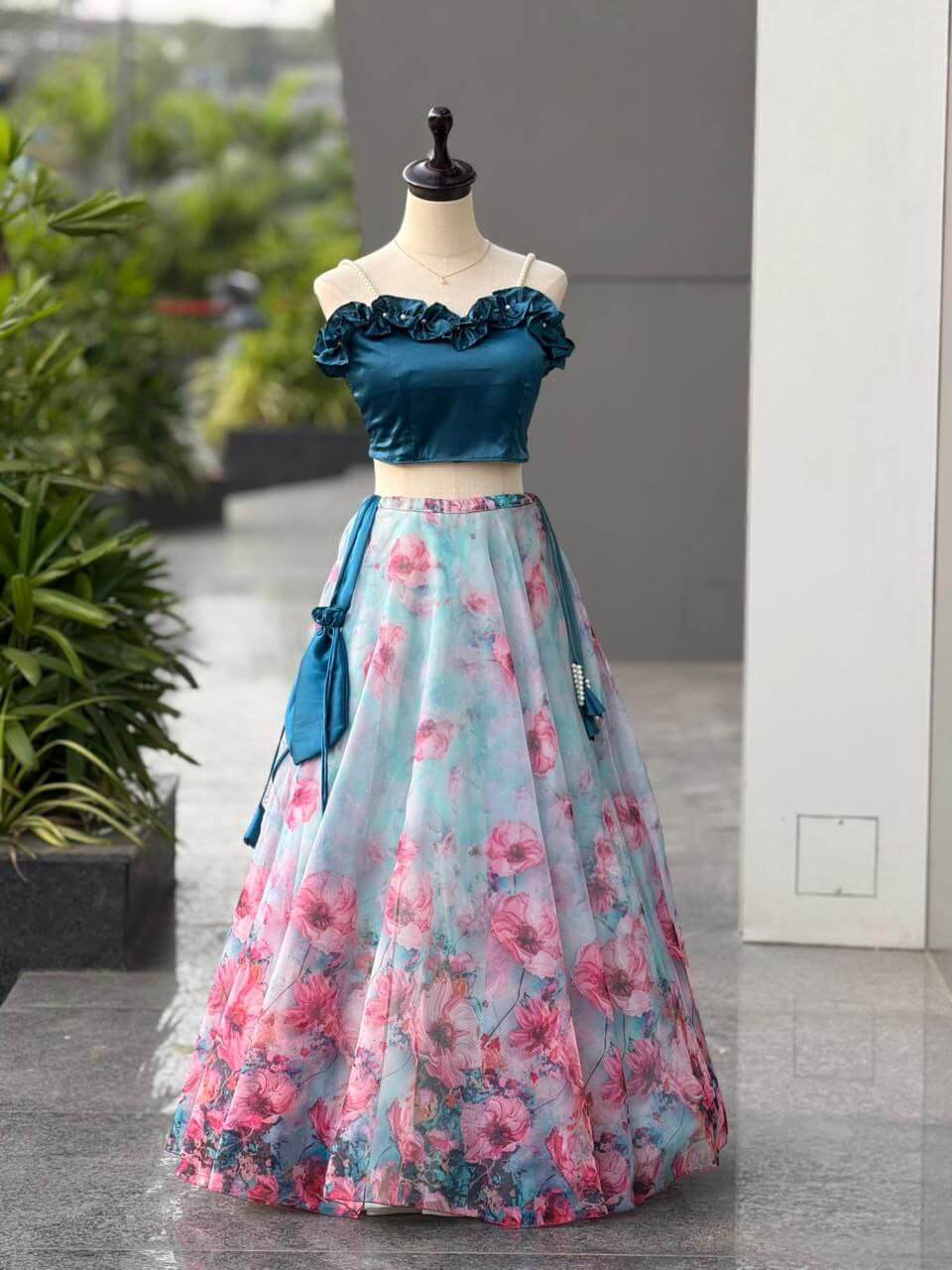 lehnga Pure organza silk digital printed lehnga. 8mtr flair lehnga with canvas patta