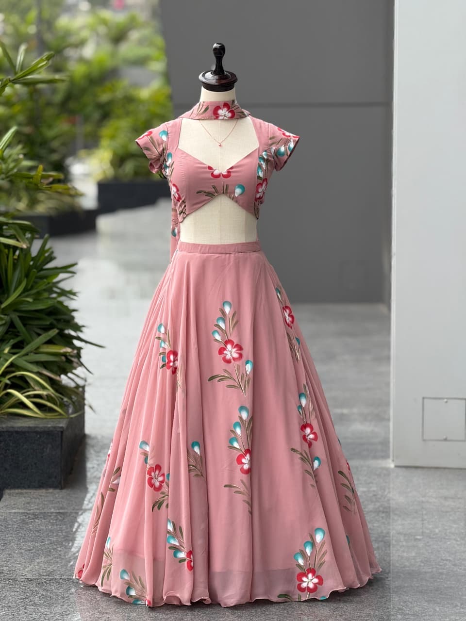 lehnga Pure Georgette Hand Painted lehnga. 8mtr flair lehnga with canvas patta