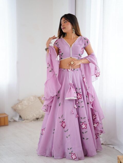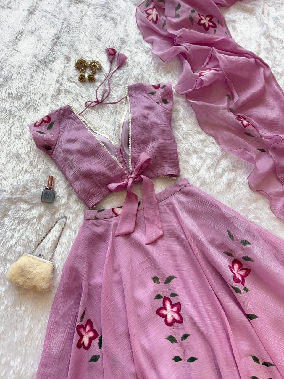 lehnga Fandy Crush Handpaint 8 mtr flair lehnga with canvas patta