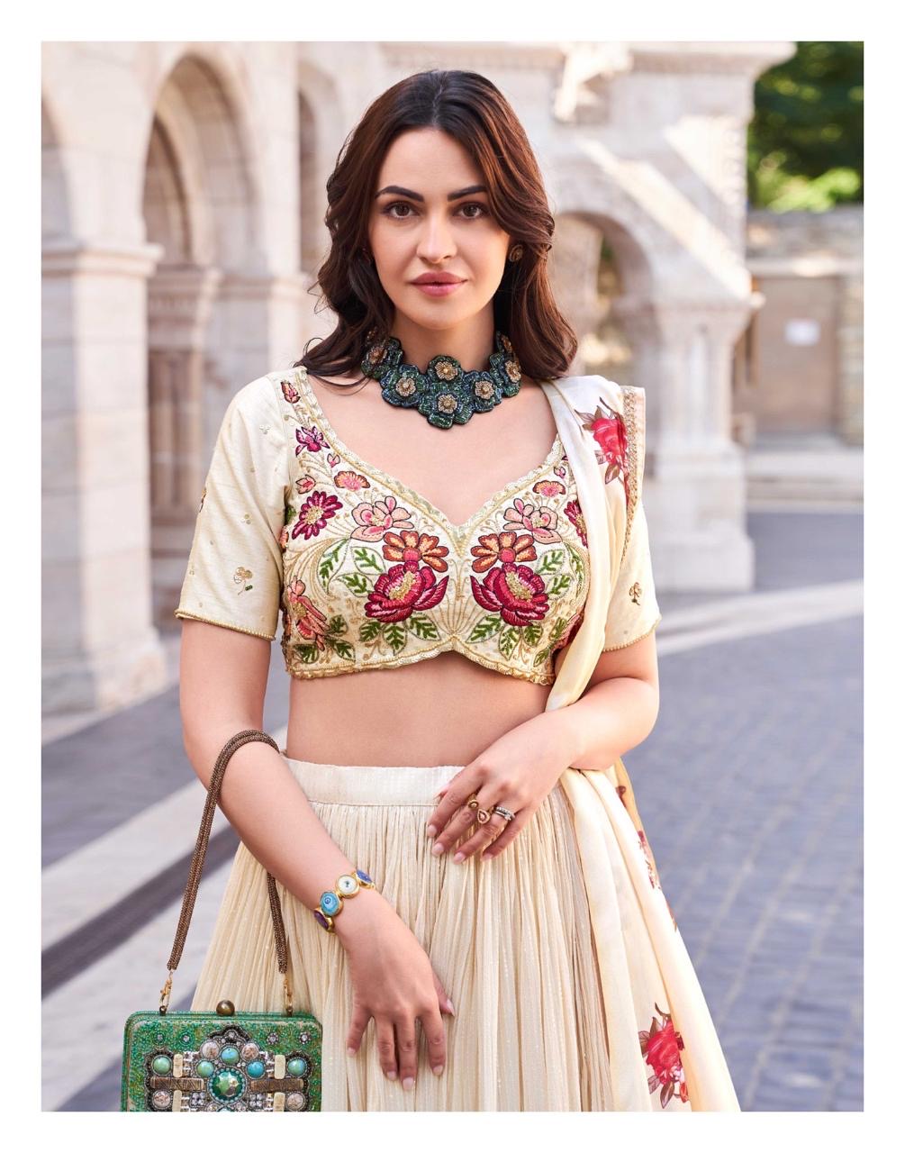 FABRIC PREMIUM REAL CHINON SILK ( HEAVY SILK EMBROIDERED HANDWORK BLOUSE WITH CHINON SILK EMBROIDERED FRONT AND BACK LHENGHS WITH CANCAN AND EMBROIDERD DUPATTA )