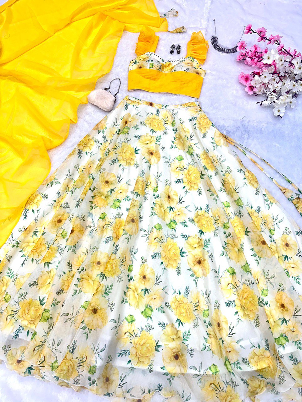 lehnga Pure jimmy organza silk floral printed lehnga . 8mtr flair lehnga with canvas patta 🌸