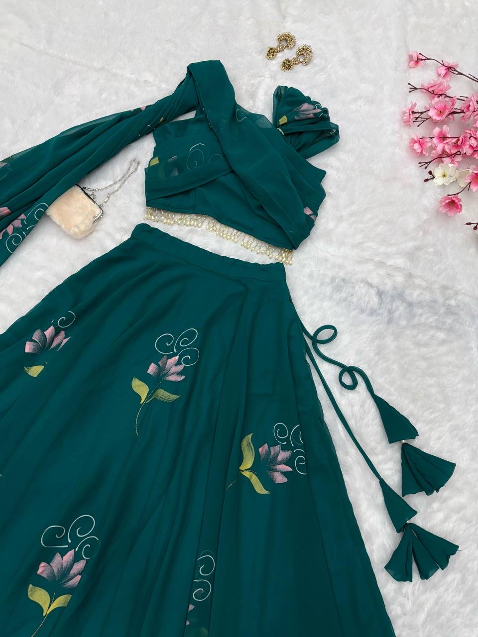lehnga Georgette hand painted 8mtr flair lehnga with canvas patta and adjustable waist Dori🌸