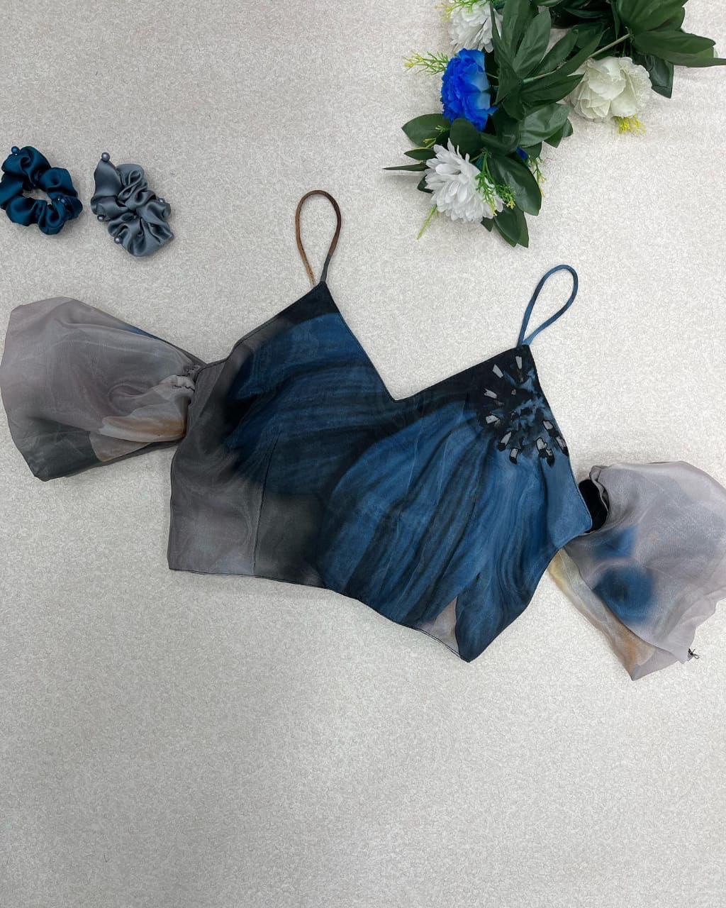 Blouse pure Jimmy organza silk blouse fully stitched size 38 padded blouse