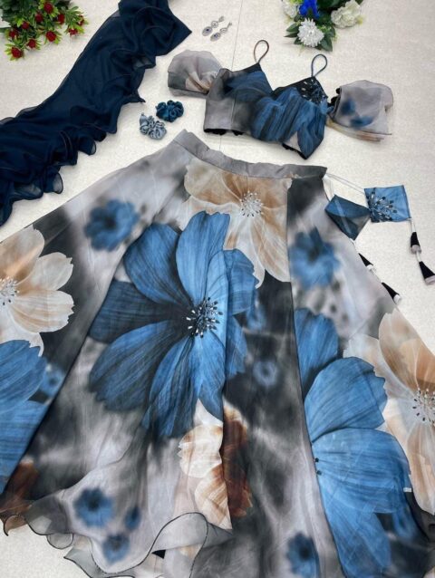 lehnga Pure Jimmy organza silk digital printed lehnga . 8mtr flair lehnga with canvas patta