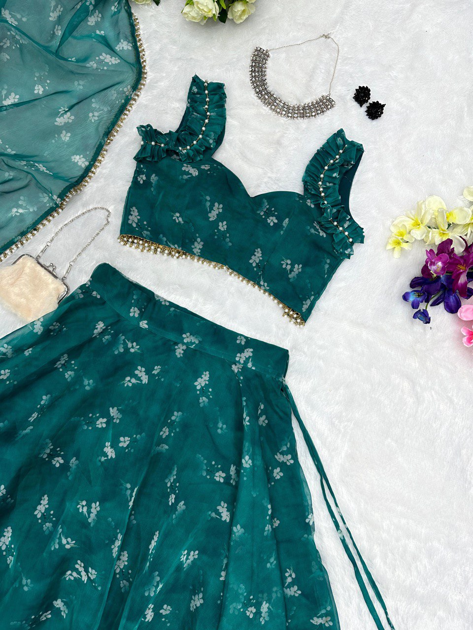 lehnga Pure organza silk digital printed lehnga . 8mtr flair lehnga with canvas patta