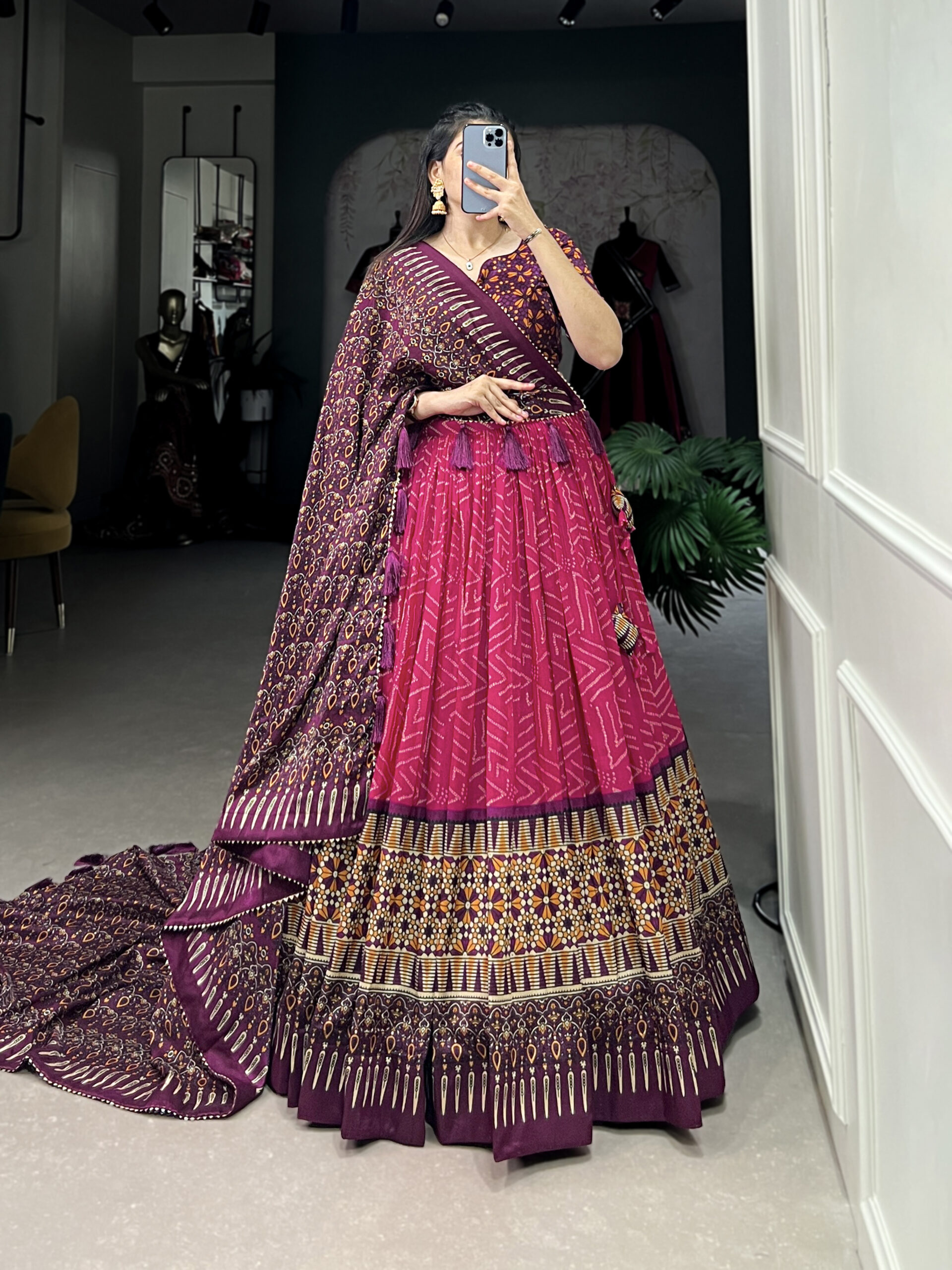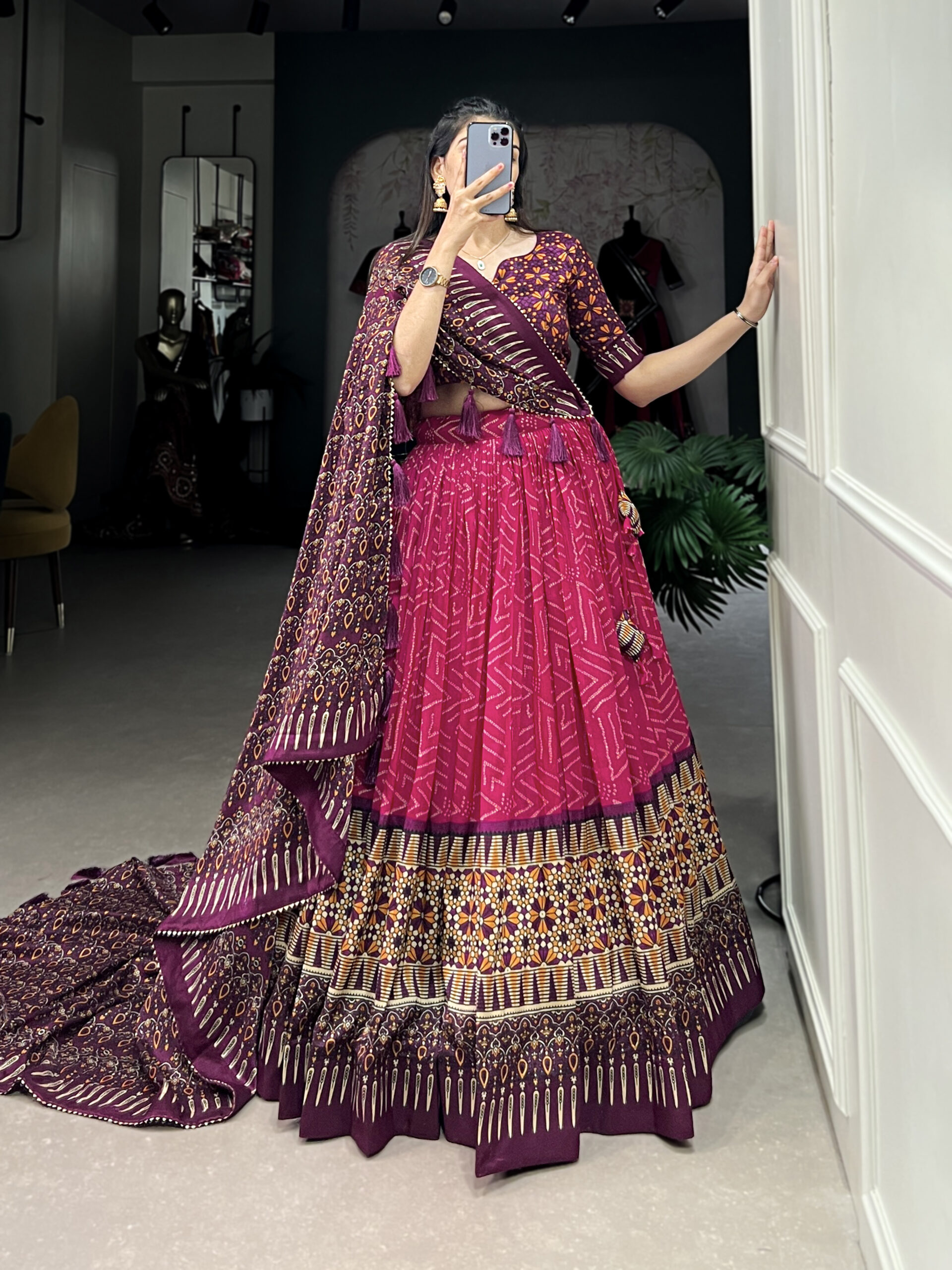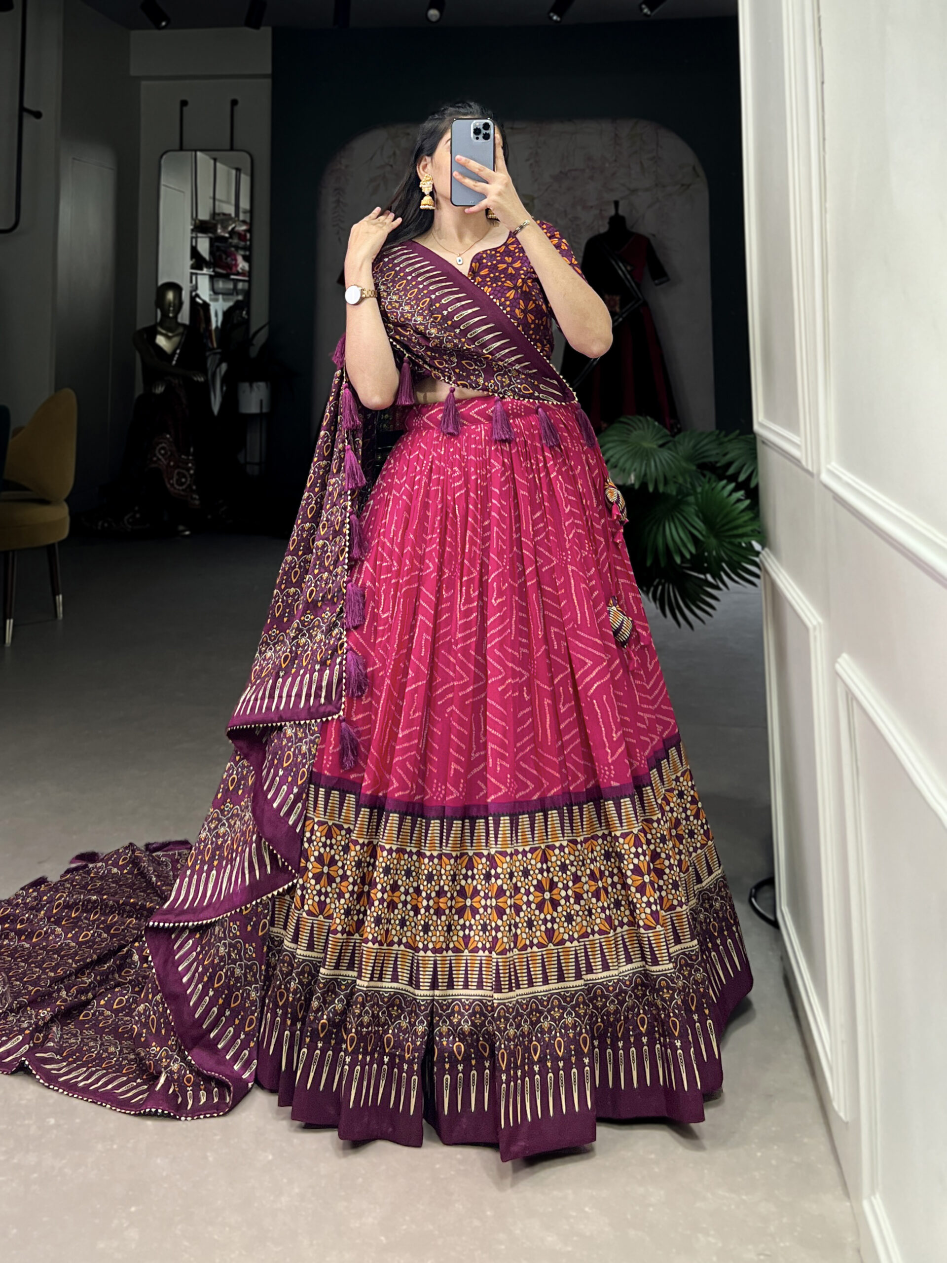 Lehenga Work Bandhej And Ajarakh Print
