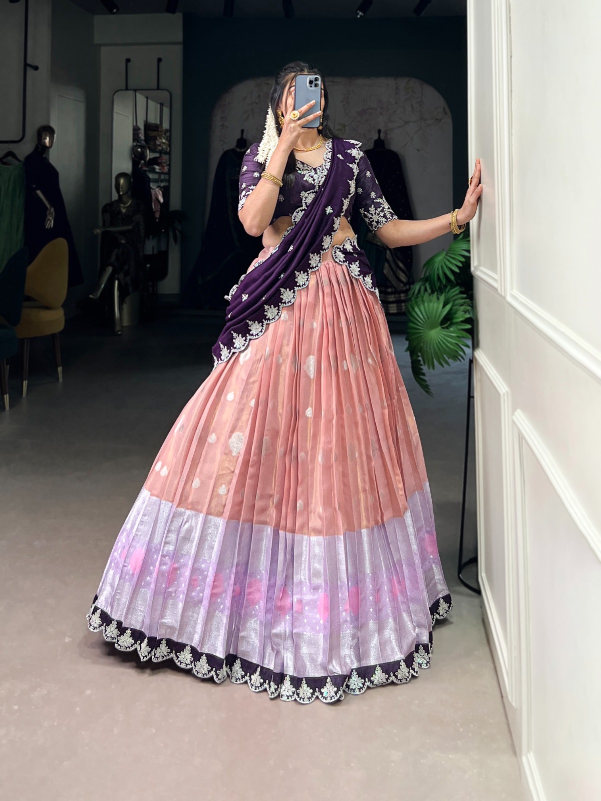 Lehenga Work Zari Weaving Work With Sequins and Thread Embroidery Scallop Lace Border