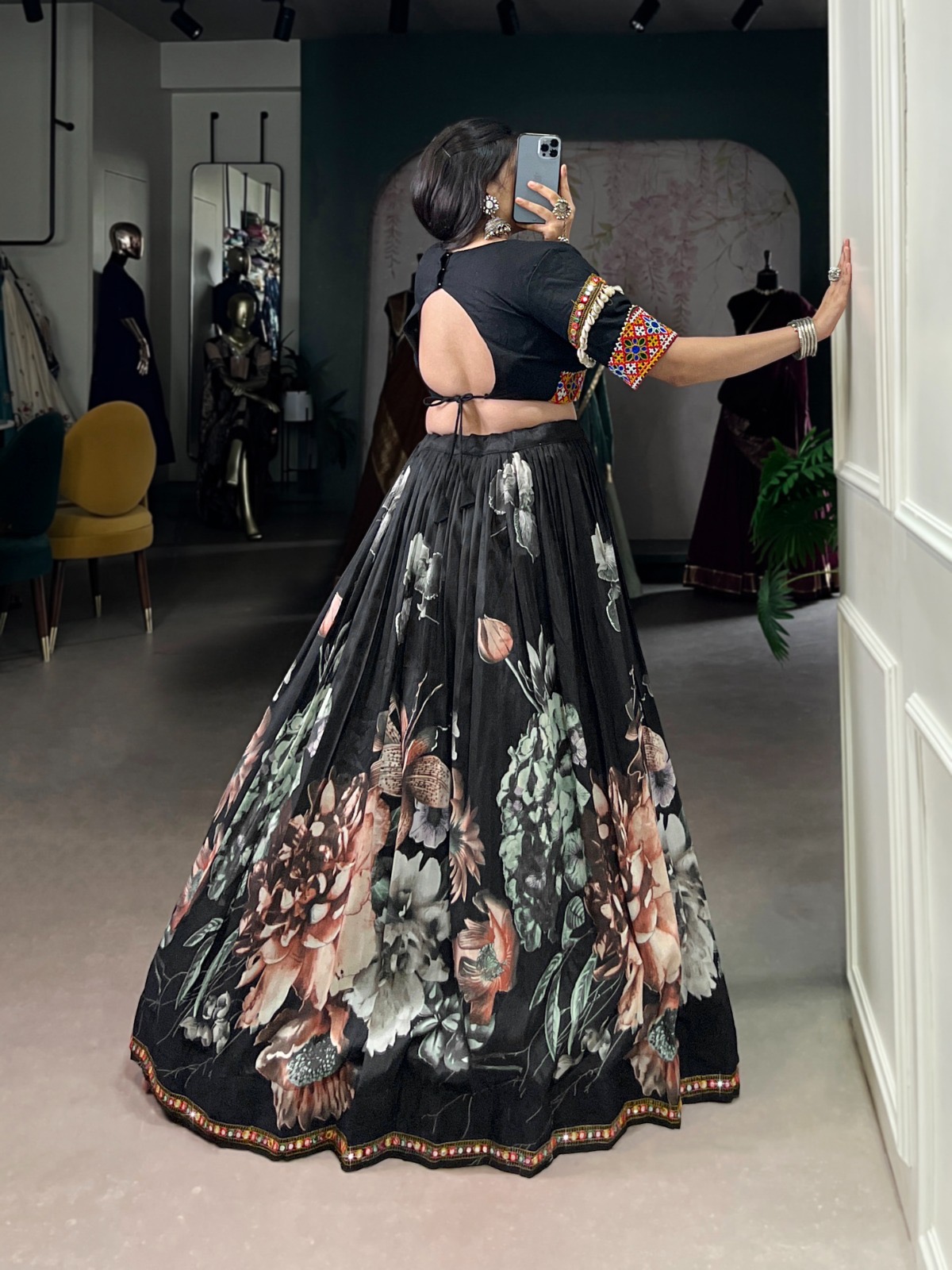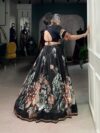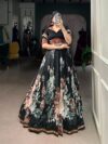 Lehenga Work Floral Print With Paper Mirror Lace Touch Up