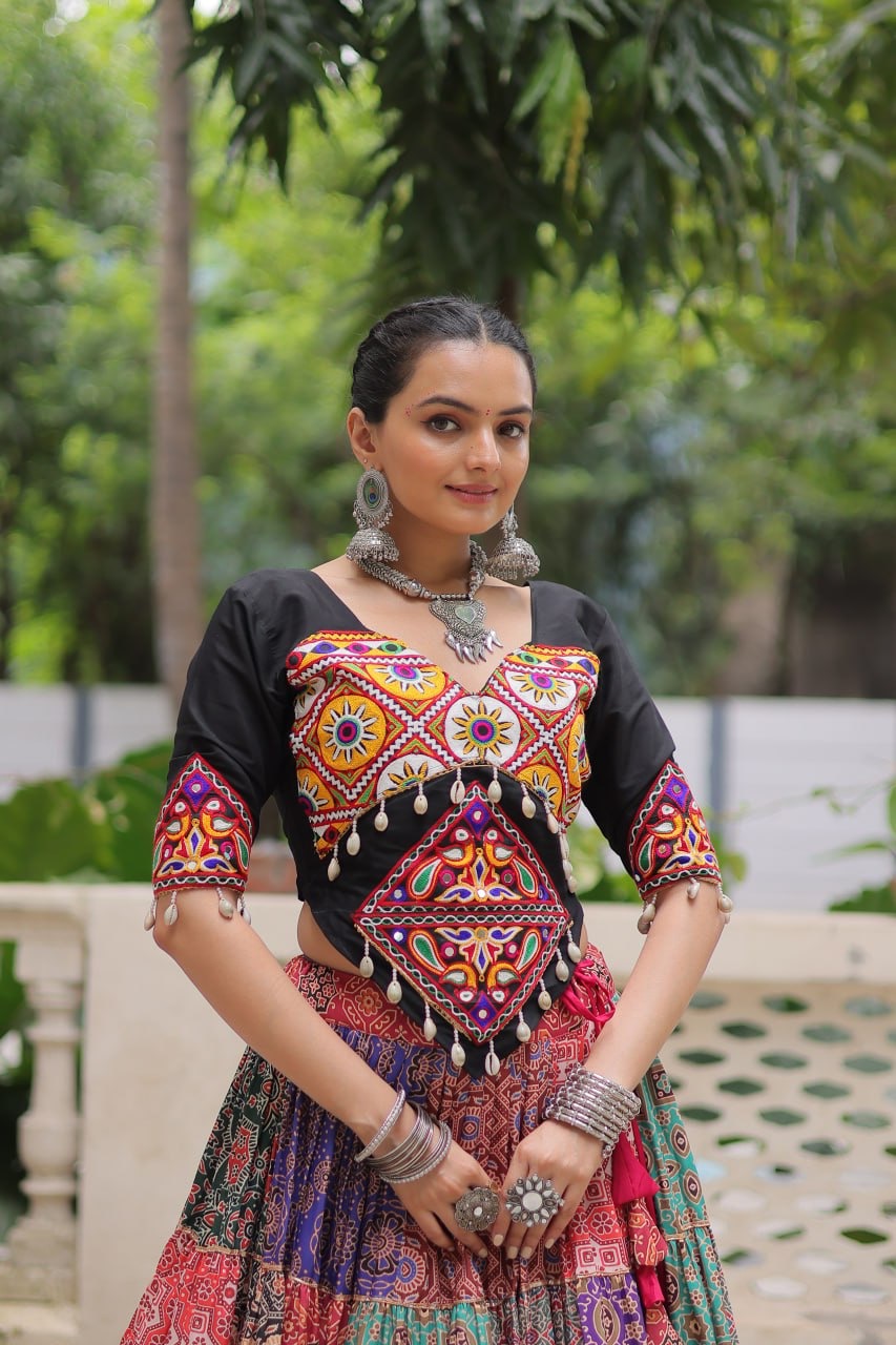 Fabric & Work 14 KG Reyon With Kutchi Gamthi Embroidered Codi Lace Work
