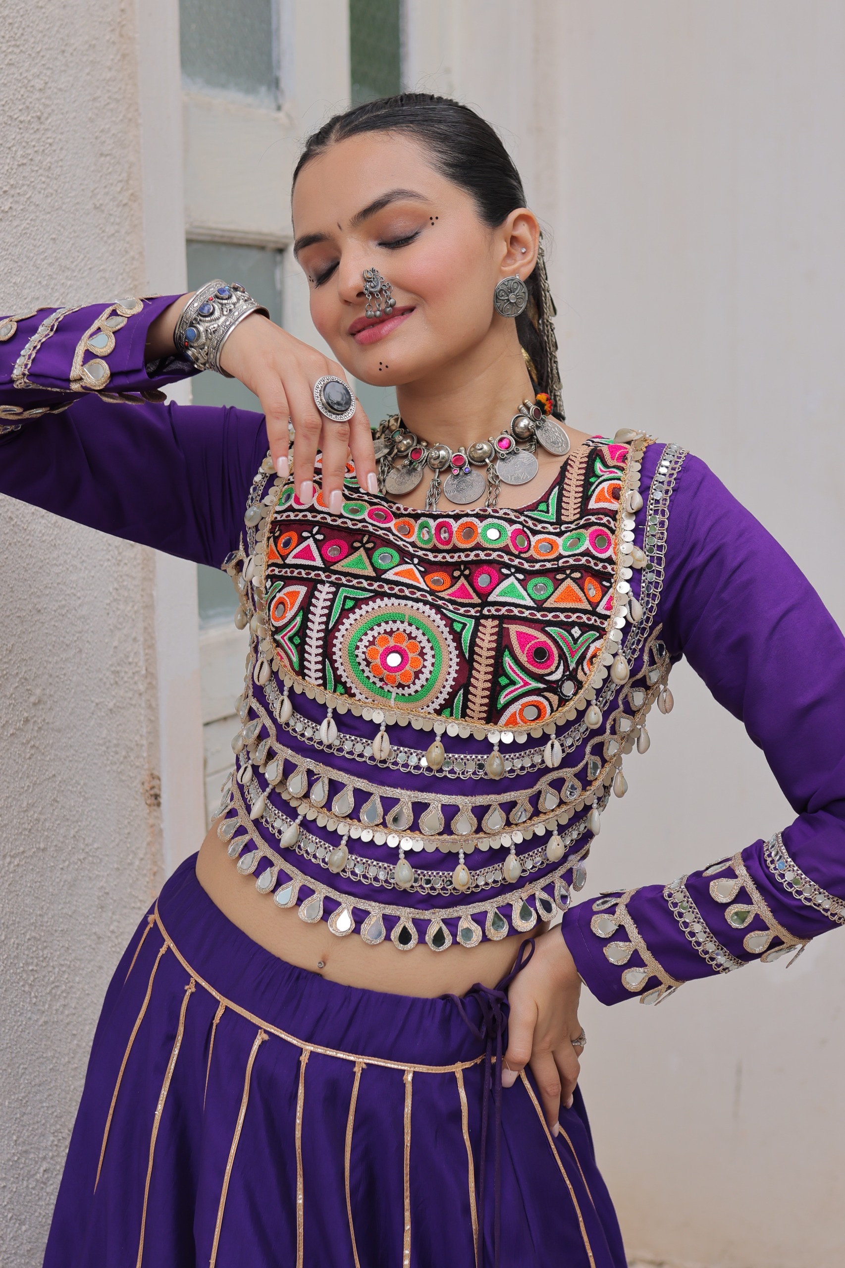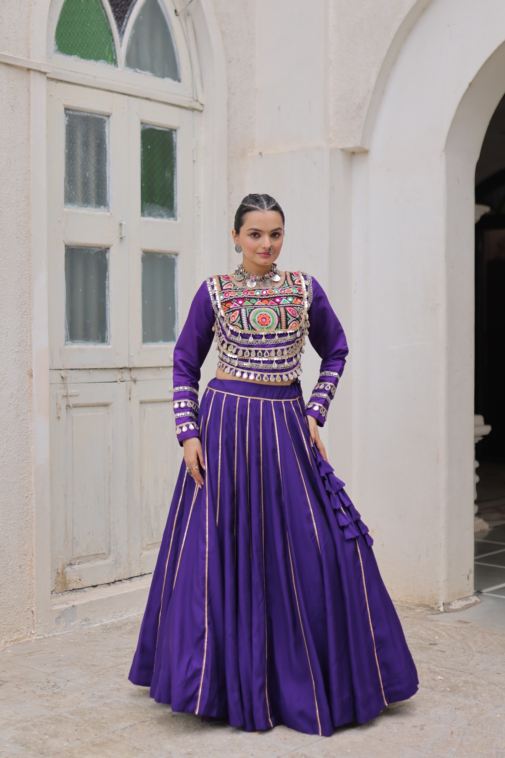 FABRICS & WORK Roman fabric with Kutchi Gamthi Embroidered Work & Mirror lace work