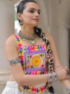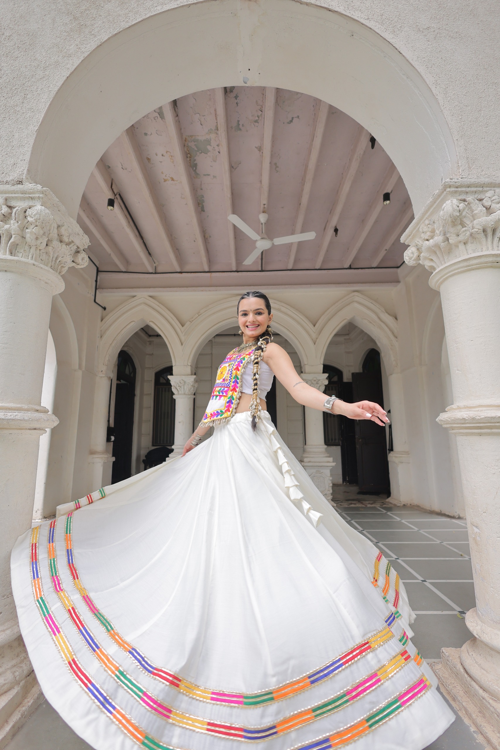 FABRICS & WORK Satin fabric with Kutchi Gamthi Embroidered & Mirror & Codi lace Work