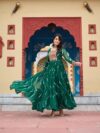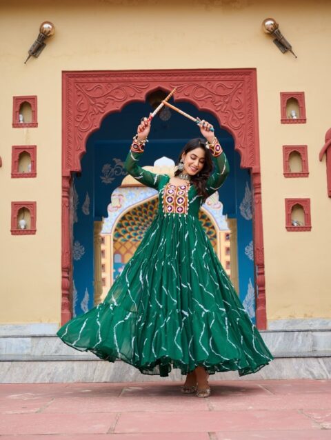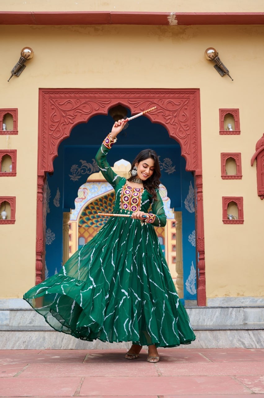 Fabrics & Work Laheriya Print with kutchi patchework in Faux Georgette.