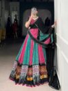Lehenga Work Bandhej And Ajarakh With Paper Mirror And Gamthi Work Lace Touch Up
