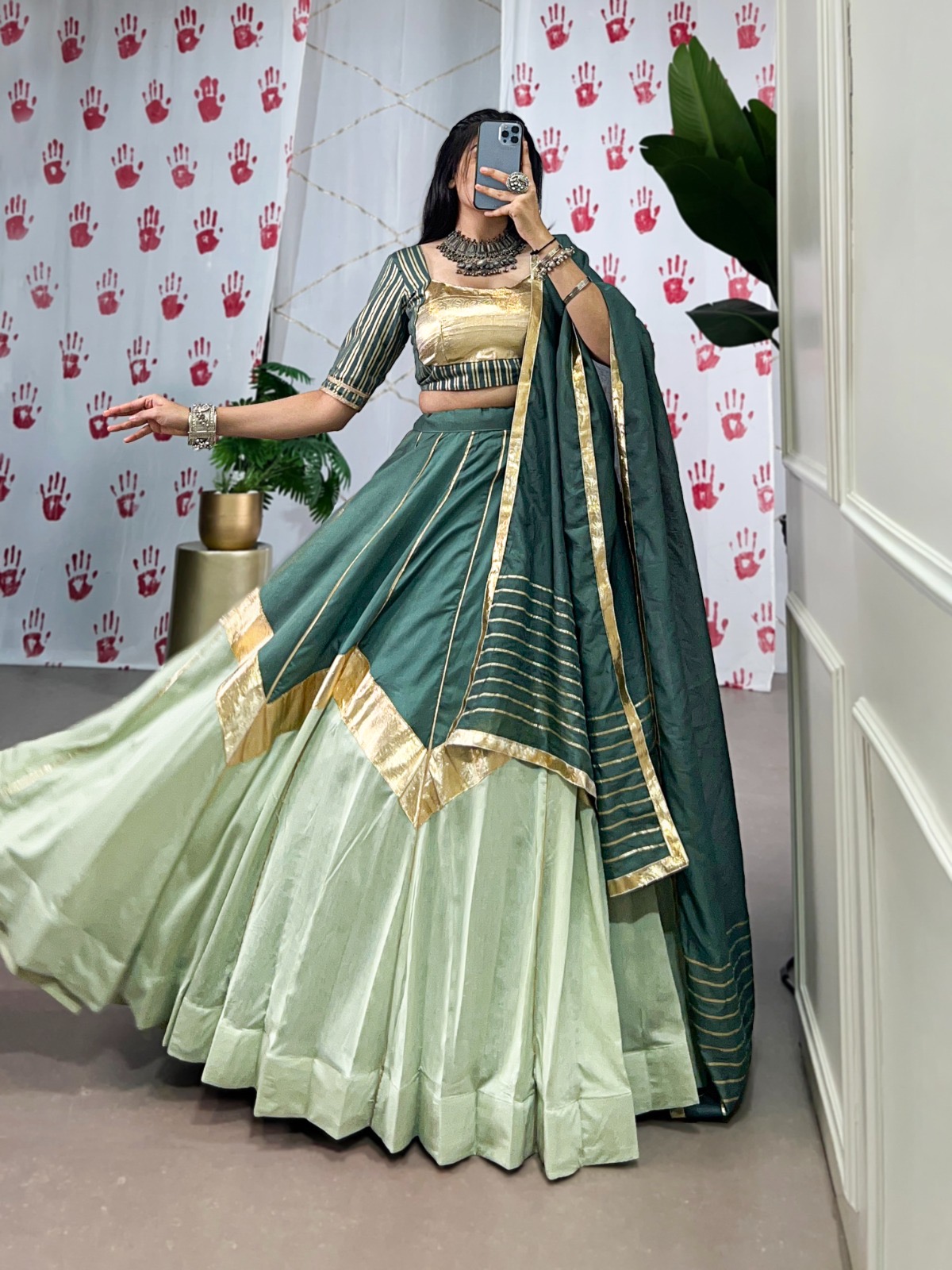 Lehenga Work Embossed Design And Gotta Patti Lace Touch Up