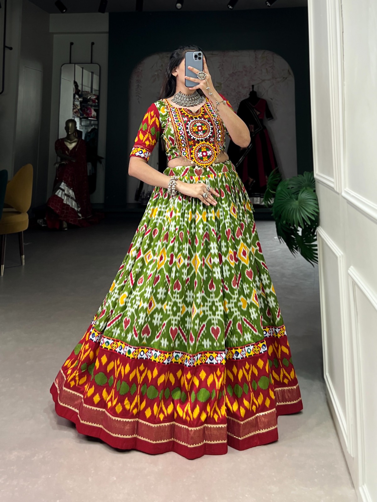 Lehenga Work Patola Print With Foil Work And Original Mirror Gamthi Lace With Gota Patti Touch Up