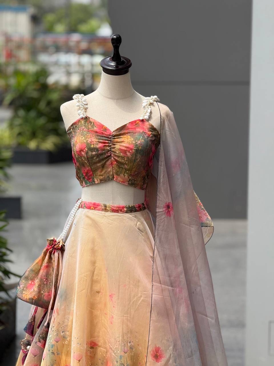 lehnga Pure Organza digital Printed lehnga. 8mtr flair lehnga with canvas patta and adjustable waist dori
