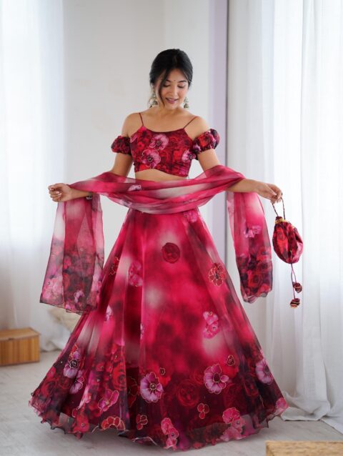 lehnga Pure Organza digital Print + Jari work lehnga. 8mtr flair lehnga with canvas patta