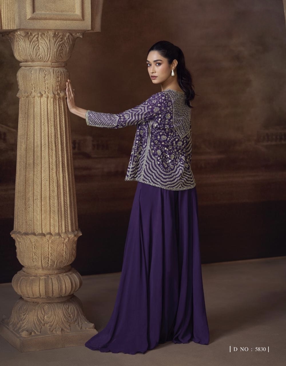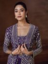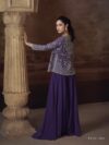 ( LATEST TRENDY FRONT AND BACK EMBROIDERED SHORT JACKET WITH MITROR WORK WITH PLAZZO AND EMBROIDERED BLOUSE )