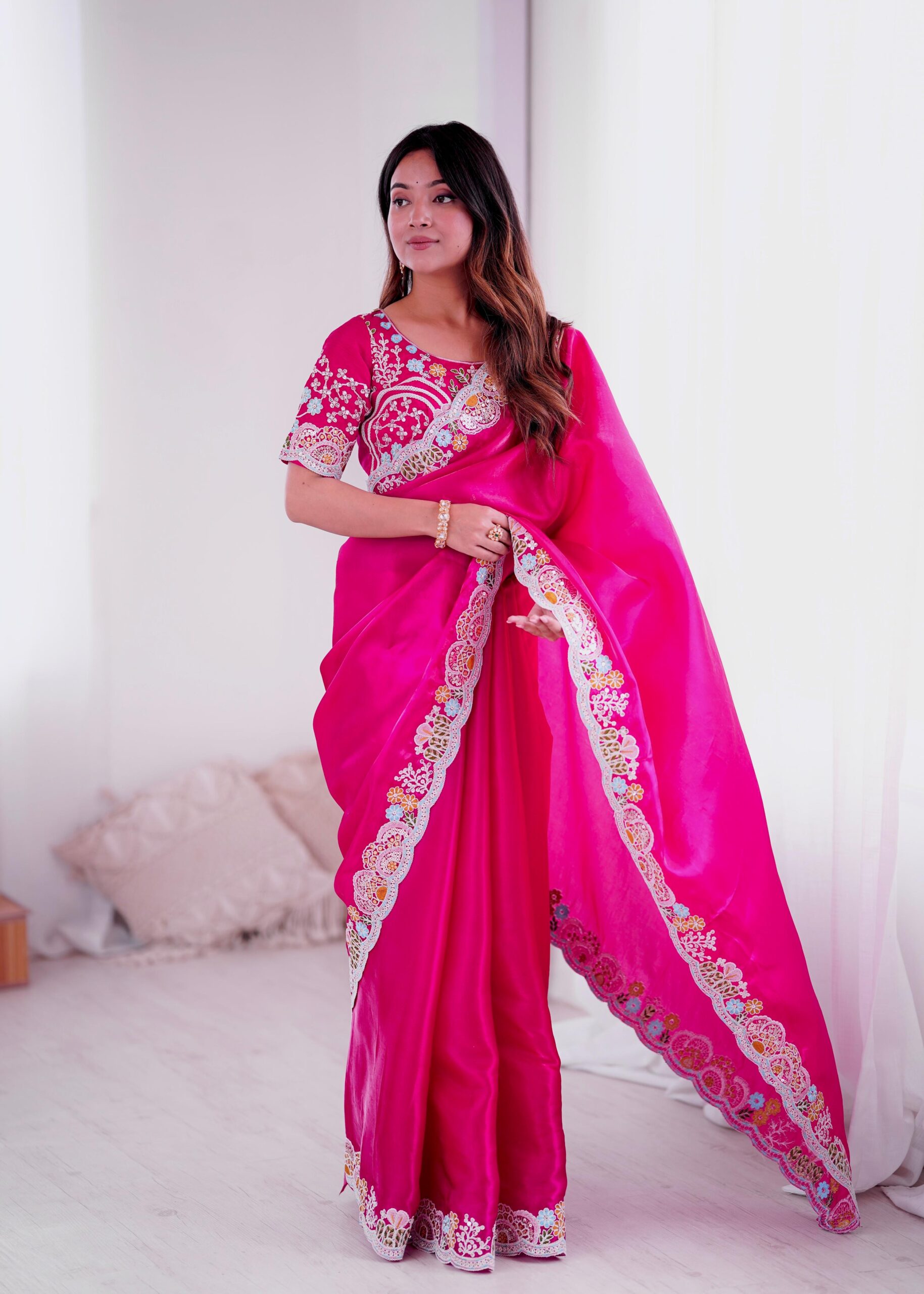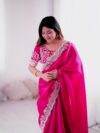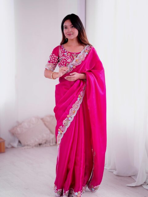 Sari Fabric Premium Jimmy Cho With Heavy Embroidery Threads Codding & Sequins Work