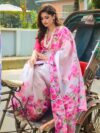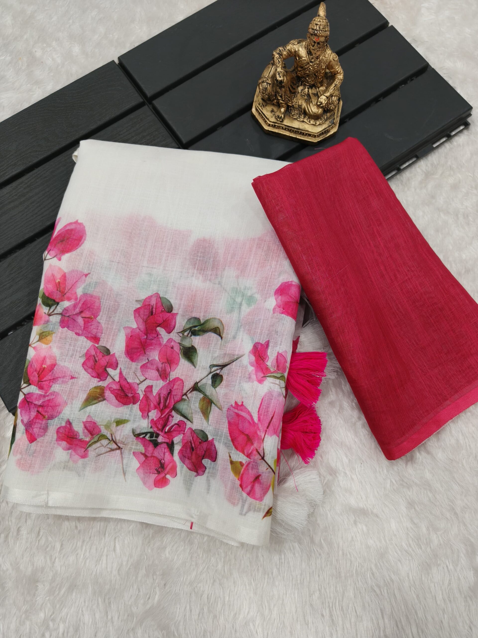 Saree Fabric Heavy lilen saree with hathi ethnic floral digital print on allover saree with PERFECTLY MATCHED blouse piece and heavy tussels allover saree